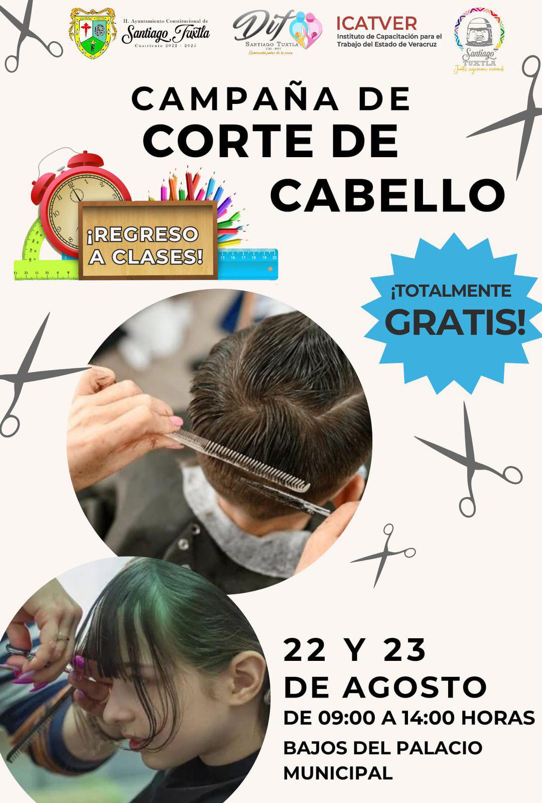 El H. Ayuntamiento de Santiago Tuxtla en coordinación con el DIF Municipal y el ICATVER informan a la ciudadanía de la Campaña de Corte de Cabello totalmente gratui-