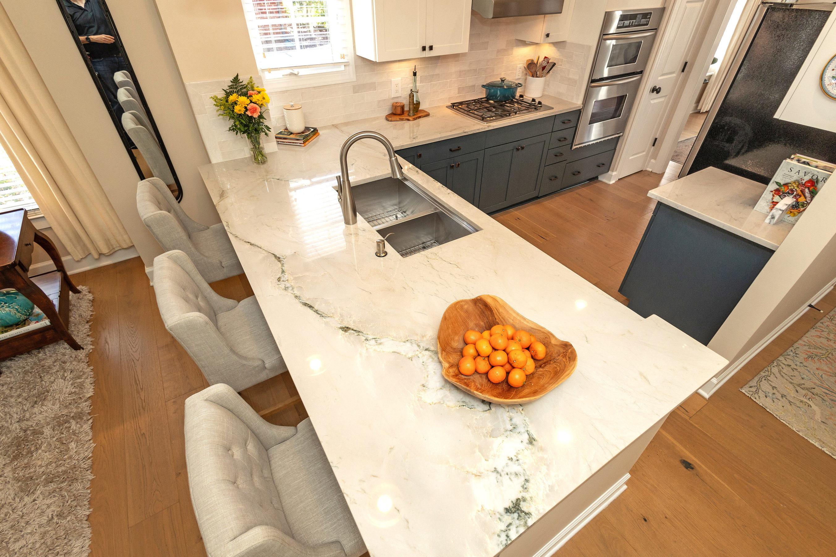 • Sea Pearl Natural Stone Quartzite countertops in the kitchen