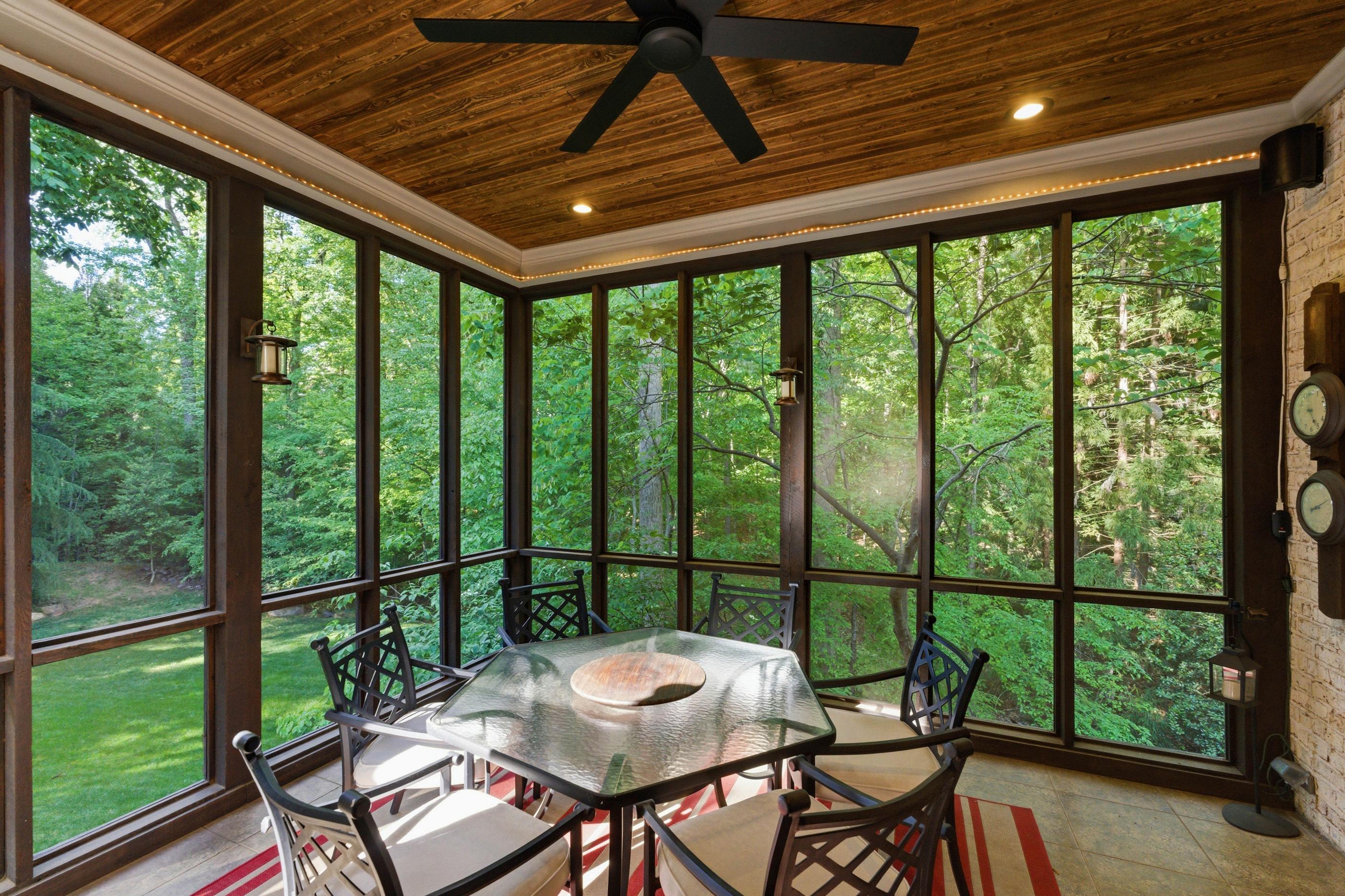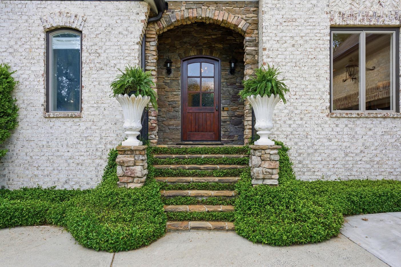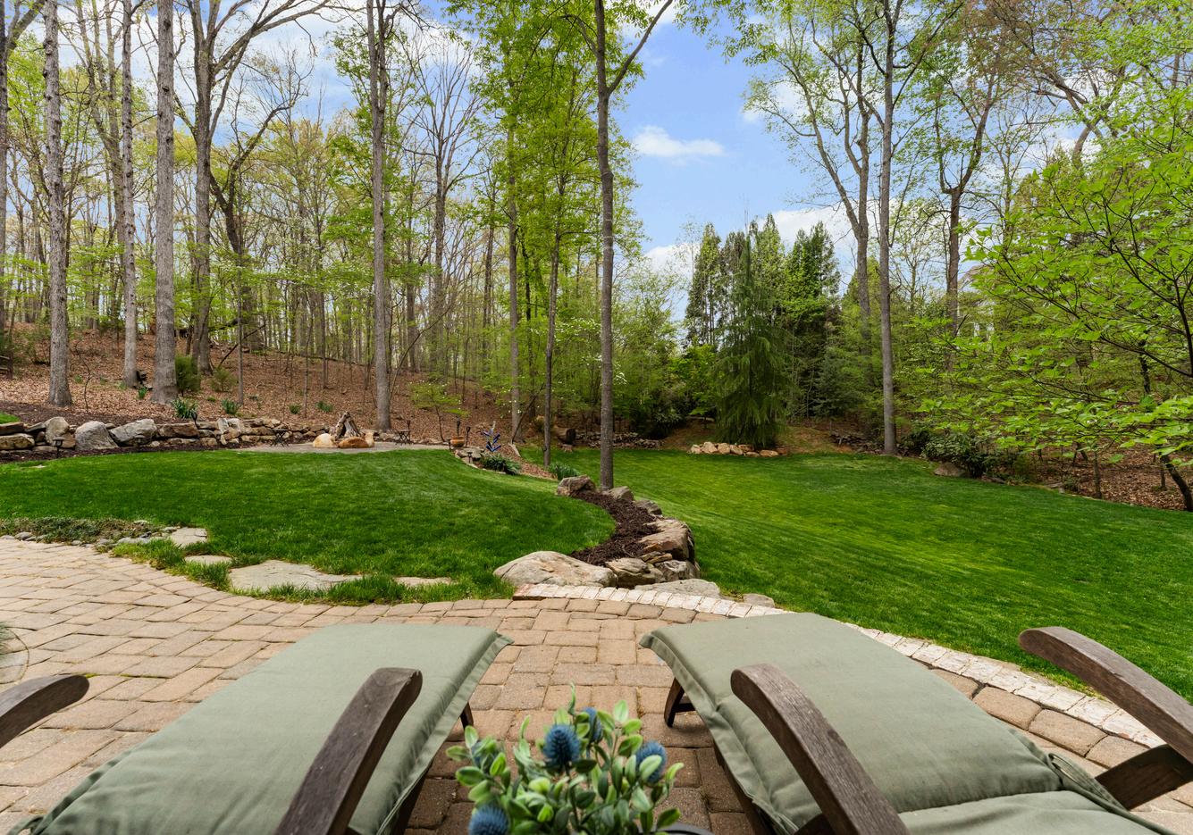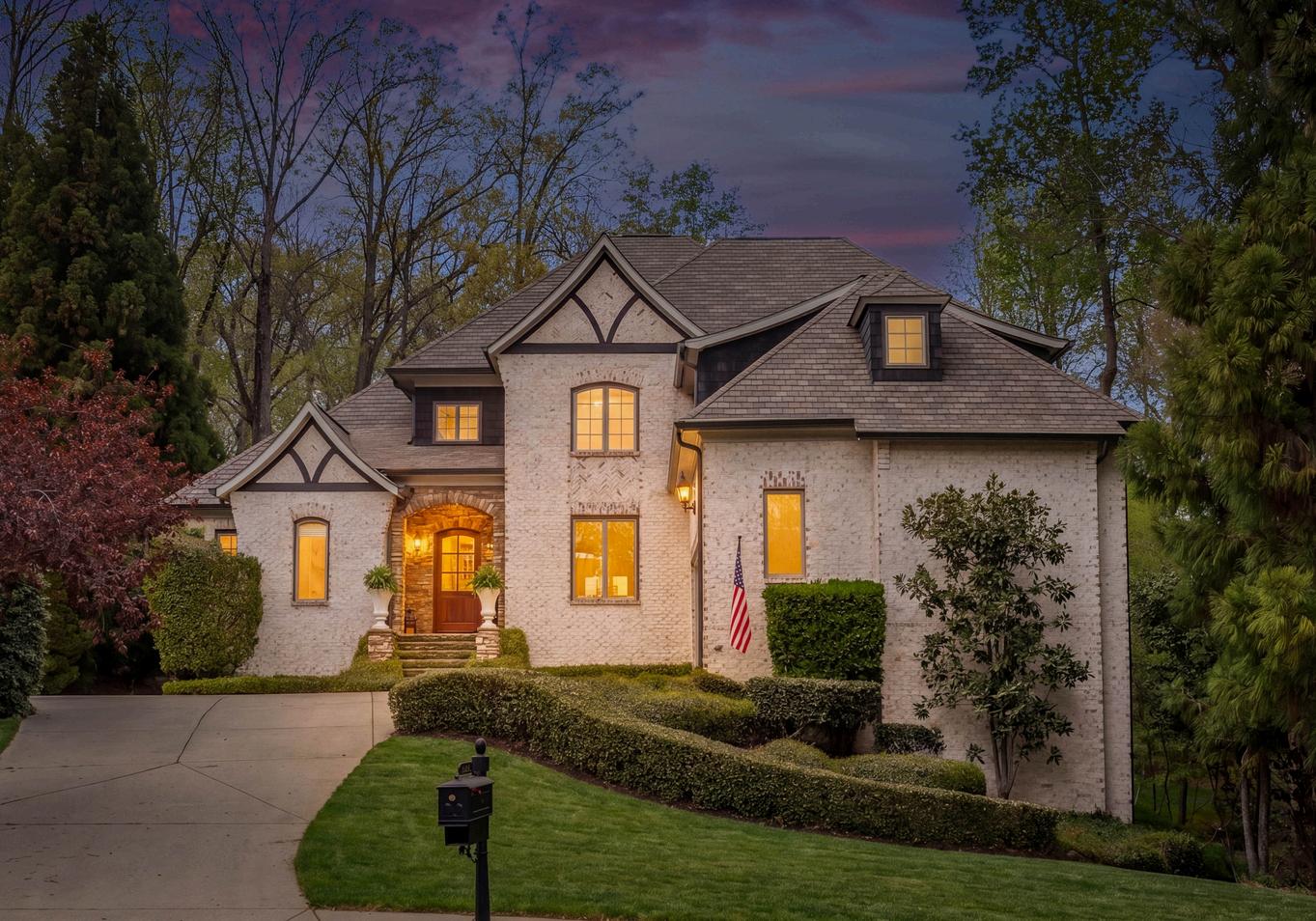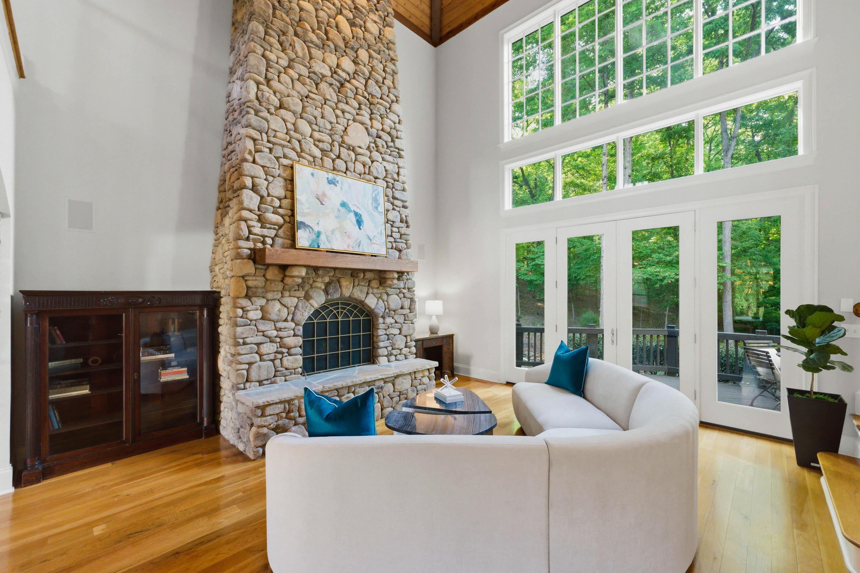 Public Rmrks: Welcome Home to your own private retreat, tucked into a serene wooded cul-de-sac setting just minutes from the conveniences of Matthews and Charlotte. This custom all-brick residence offers six bedrooms and exceptional living space designed for both everyday comfort and effortless entertaining. Set on a premium lot with abundant open space for recreation, the home blends timeless architecture with a peaceful natural backdrop. Inside, dramatic design elements make an immediate impression, including a 30-foot cedarpaneled ceiling, a dramatic tapered river stone fireplace with solid timber mantel, and a stunning two-story wall of windows that bring the outdoors into the heart of the home. In 2026, the main level was enhanced with curated designer lighting, while the chef’s kitchen was beautifully remodeled with an expansive island and handmade Moroccan Zellige tile. The kitchen flows seamlessly into the breakfast area, keeping room and screened in porch, creating an inviting space for gathering. Main floor living areas with 10' ceilings connect beautifully for entertaining while offering elevated views of the expansive backyard. The main-level primary suite provides convenience and privacy, while the second floor features three spacious bedrooms, each with