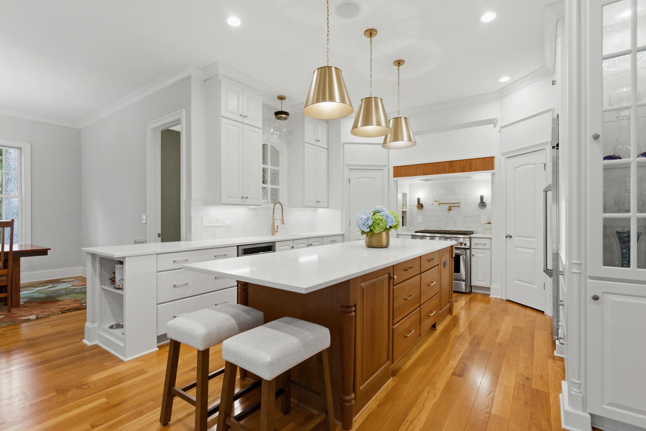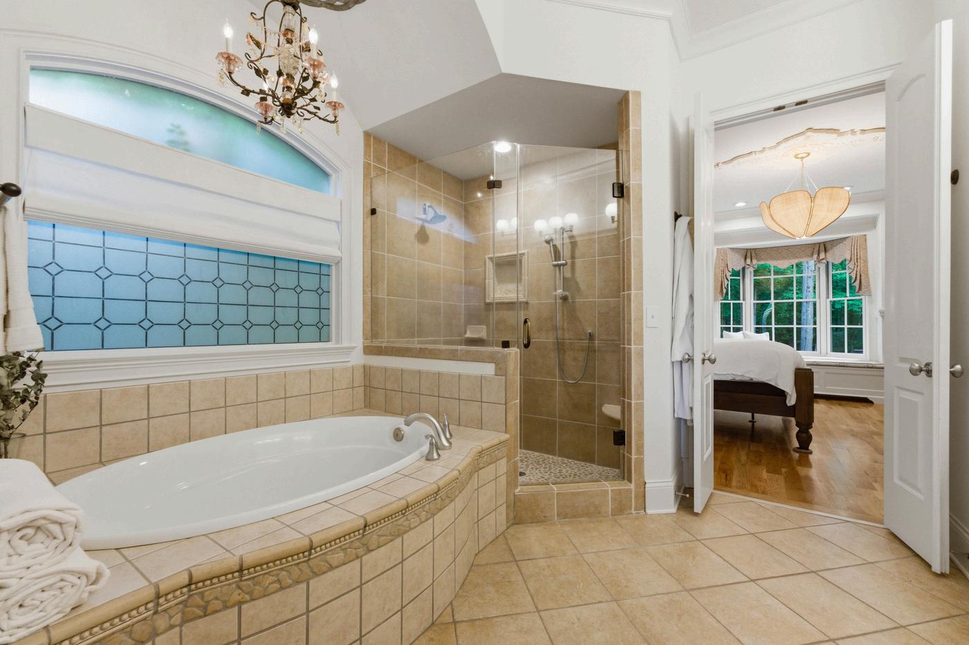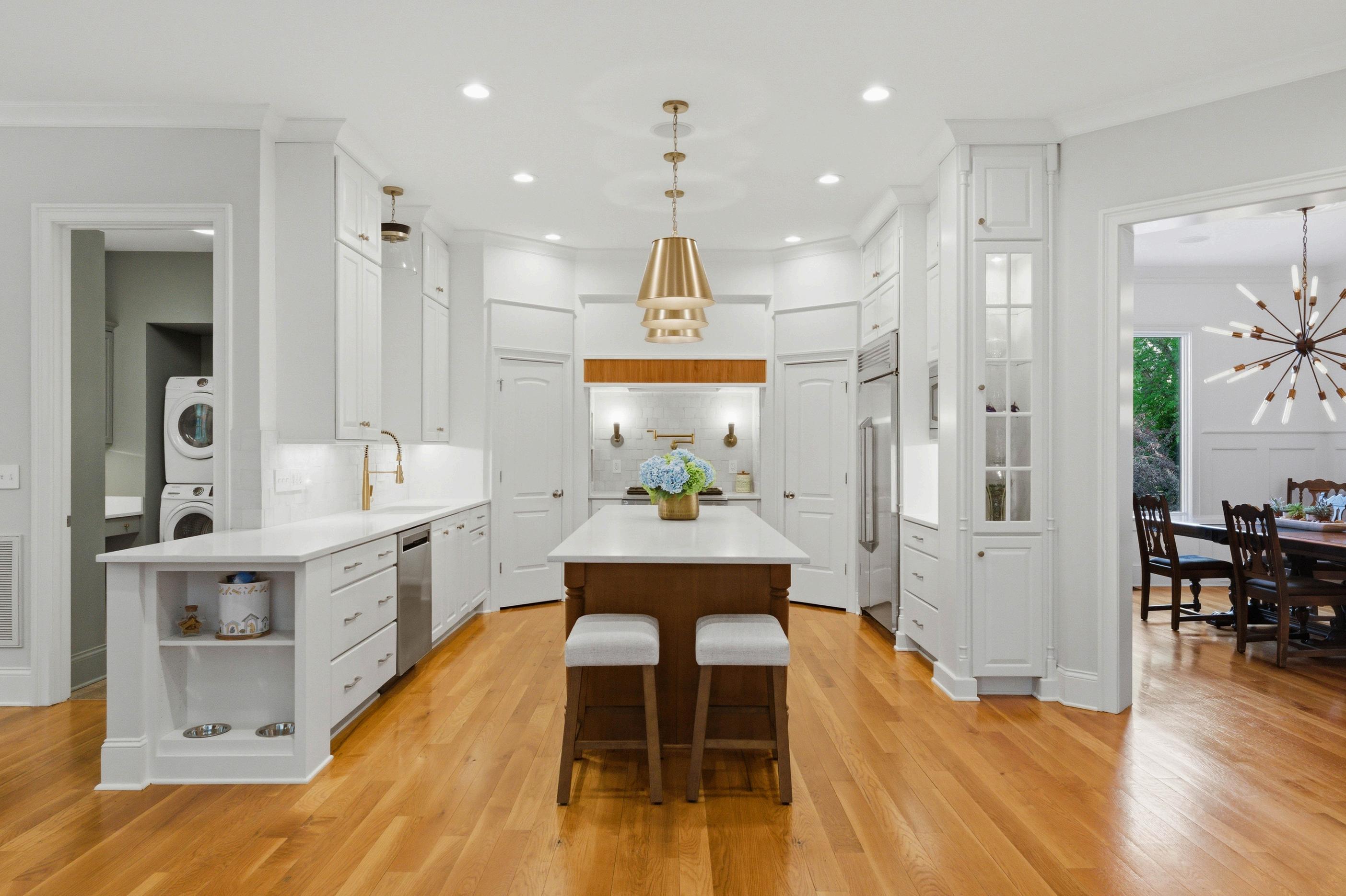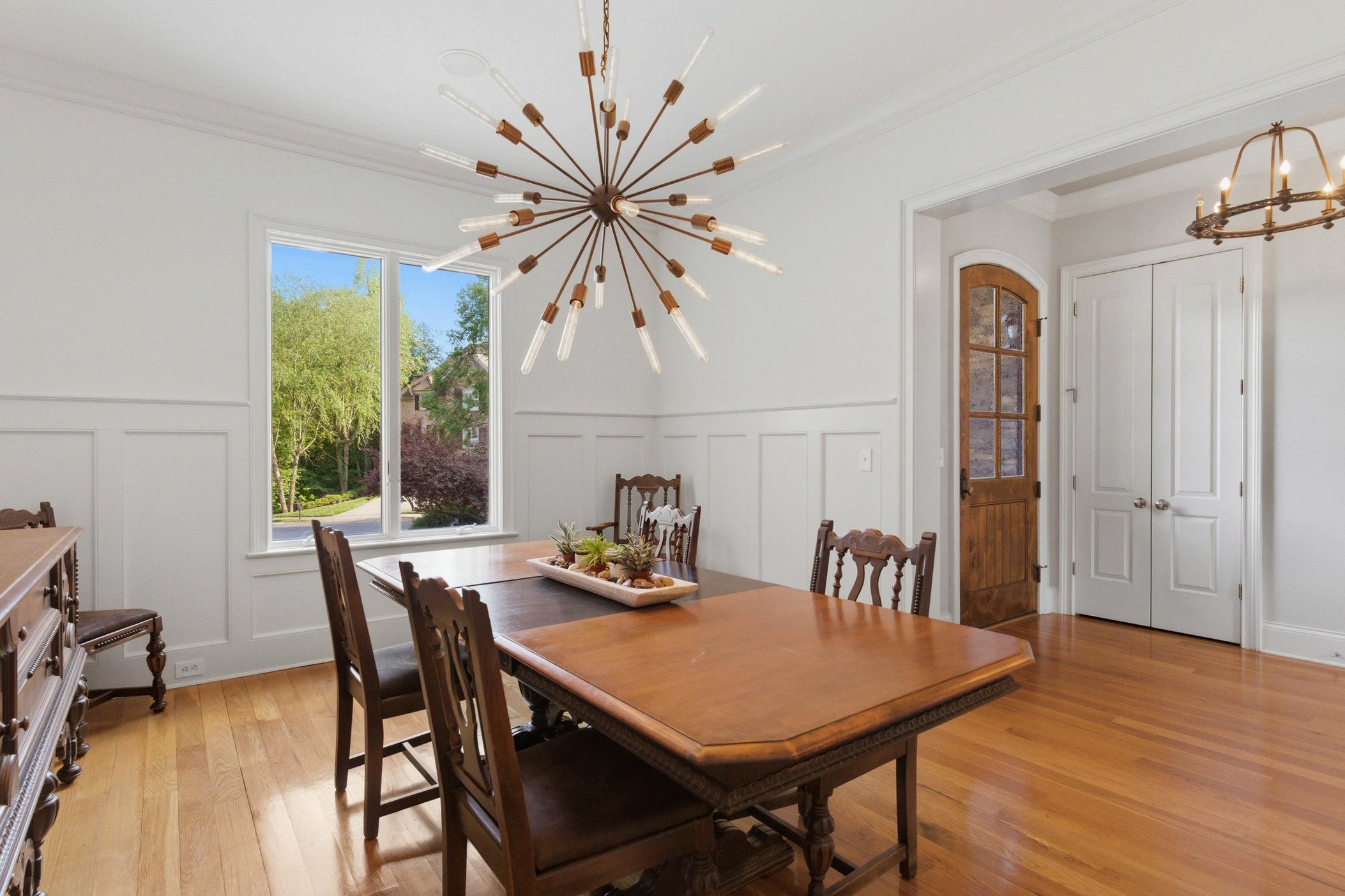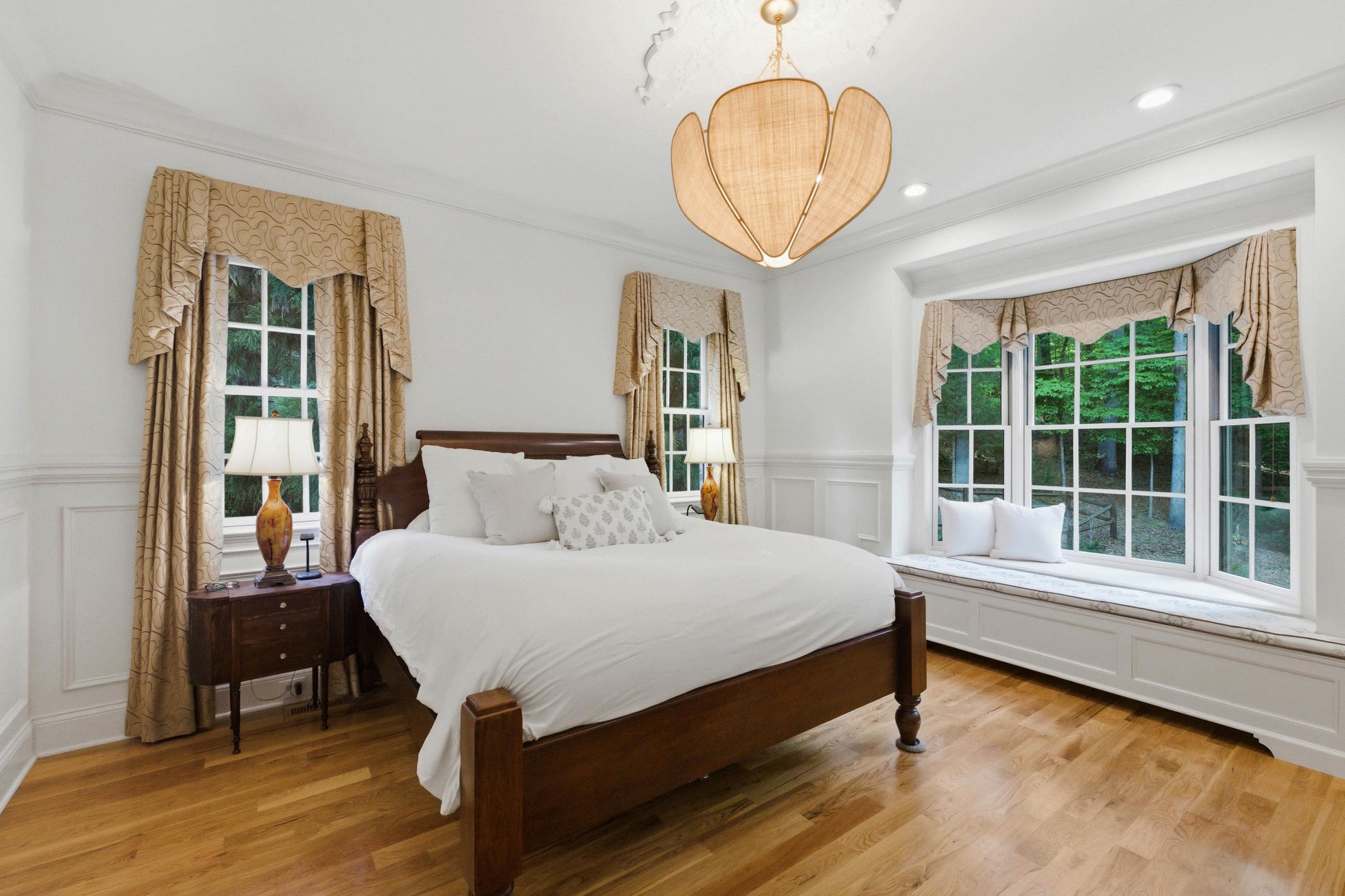 Public Rmrks: Welcome Home to your own private retreat, tucked into a serene wooded cul-de-sac setting just minutes from the conveniences of Matthews and Charlotte. This custom all-brick residence offers six bedrooms and exceptional living space designed for both everyday comfort and effortless entertaining. Set on a premium lot with abundant open space for recreation, the home blends timeless architecture with a peaceful natural backdrop. Inside, dramatic design elements make an immediate impression, including a 30-foot cedarpaneled ceiling, a dramatic tapered river stone fireplace with solid timber mantel, and a stunning two-story wall of windows that bring the outdoors into the heart of the home. In 2026, the main level was enhanced with curated designer lighting, while the chef’s kitchen was beautifully remodeled with an expansive island and handmade Moroccan Zellige tile. The kitchen flows seamlessly into the breakfast area, keeping room and screened in porch, creating an inviting space for gathering. Main floor living areas with 10' ceilings connect beautifully for entertaining while offering elevated views of the expansive backyard. The main-level primary suite provides convenience and privacy, while the second floor features three spacious bedrooms, each with