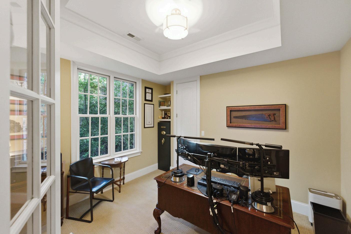 its own ensuite bath and a bonus room. The ground floor is unmatched with 10’ ceilings and includes media and entertainment area with speakers, dedicated fitness space, kitchenette, office/bedroom, guest bedroom/bath, plus an additional flex room ideal for a den, wine room, or music room. The ground level also functions perfectly as a guest suite or private living quarters for a nanny or extended stay visitors. Additional features include: extensive hardwood flooring, Italian porcelain tile, solid-core doors, and upgraded millwork reflecting the quality found throughout. Two laundry rooms, three fireplaces, built in speakers and generous walk in storage add comfort and function throughout the home. Conveniently located to private and public schools, restaurants, retail, shopping and Uptown Charlotte. Homes like this are rare, with its peaceful setting and expansive layout, this home truly feels like a vacation every day.
