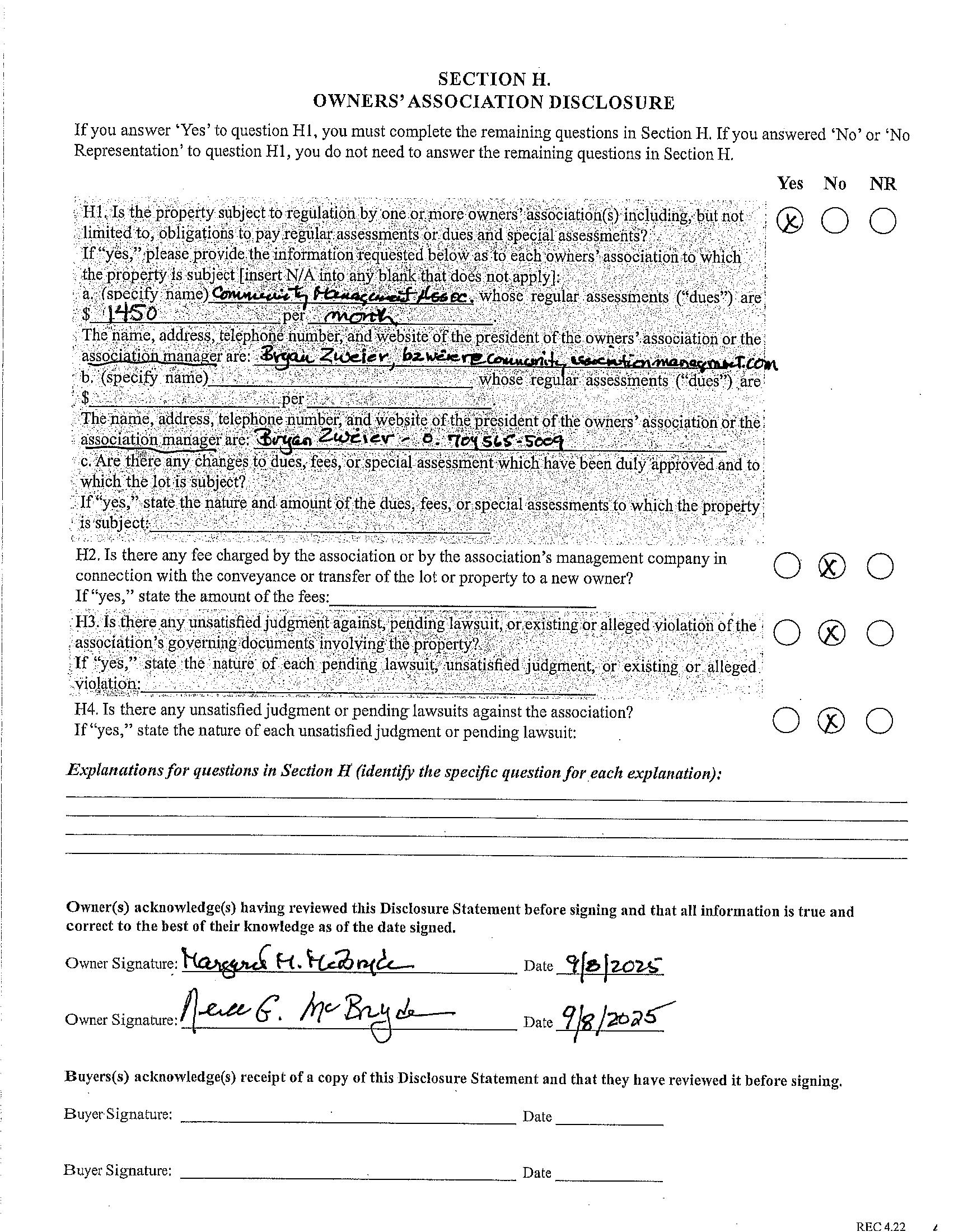 Subject to HOA: Required