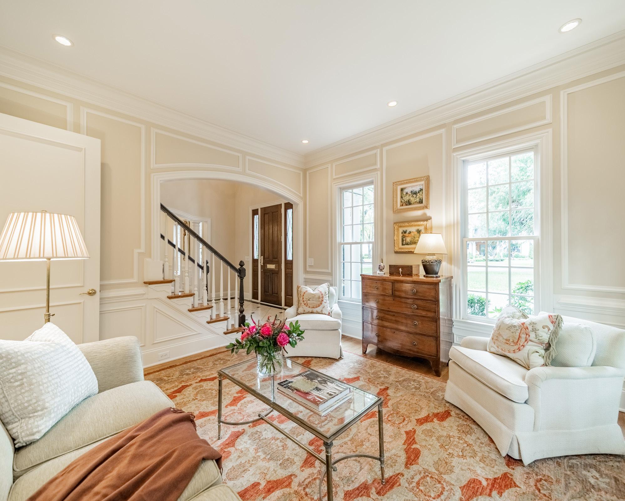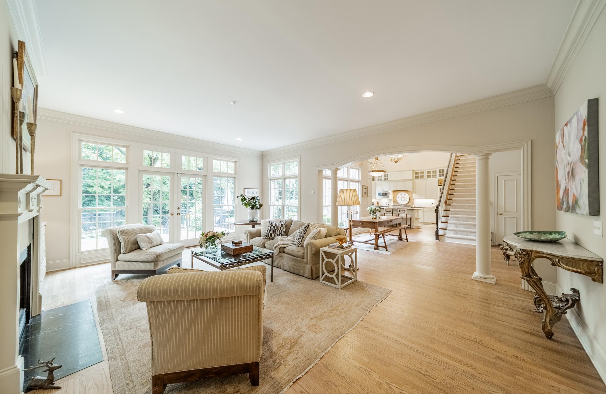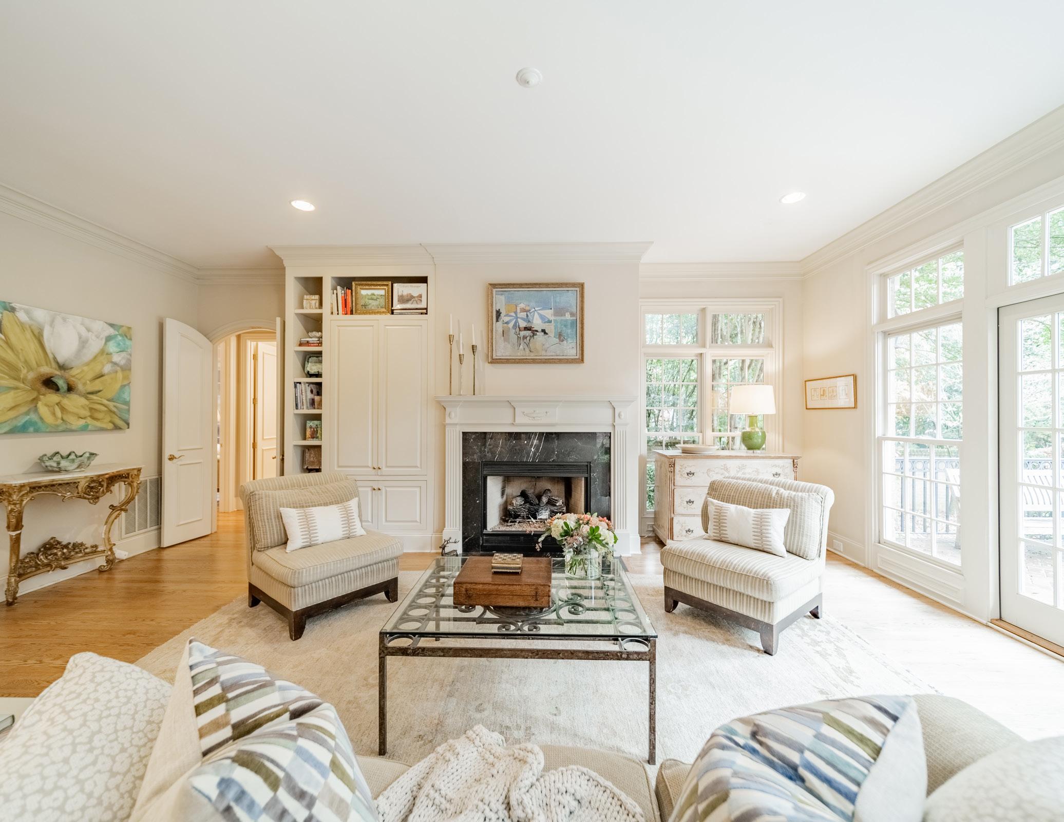 10’ ceilings, rich hardwood floors, and sun-filled rooms throughout. The chef’s kitchen has professional-grade appliances, custom cabinetry, and a breakfast room wrapped in windows. Thoughtfully designed gathering spaces include formal living and dining rooms, plus a spacious great room with built-ins and a fireplace overlooking the backyard. A main-level guest suite offers flexibility for visitors or multi-generational living. Upstairs, the primary suite is a true sanctuary with a spa-inspired bath, soaking tub, dual vanities, oversized shower, and a generous walk-in closet. An additional bedroom suite, two secondary bedrooms with a shared bath, and a bonus room complete the upper level. The three-car garage, circular drive, and motor court provide ample parking for family and friends. Ideally located between Sterling Road and Ridgewood Avenue, just minutes from Myers Park Country Club, Reid’s, and The Jimmy. Welcome home!