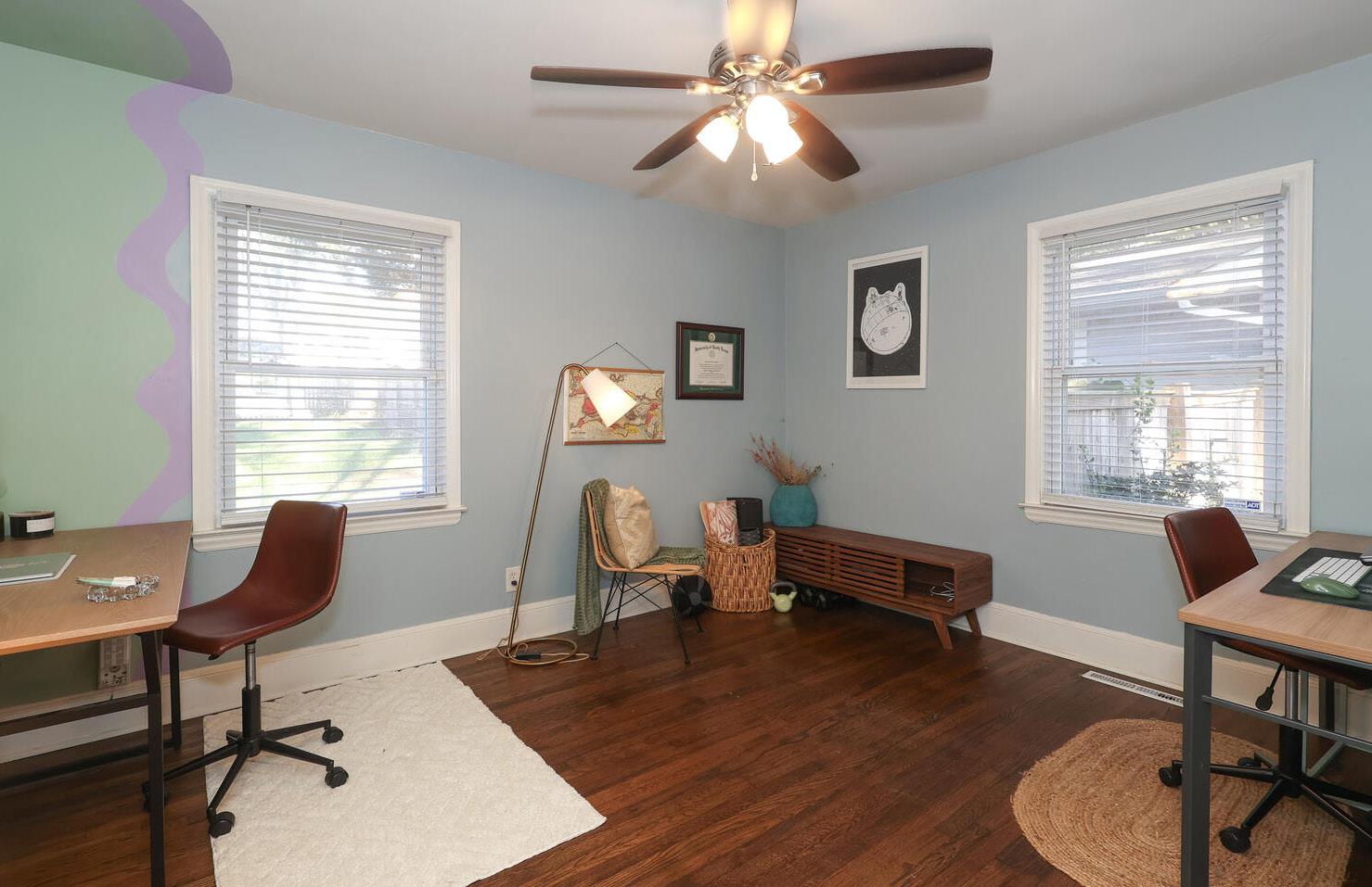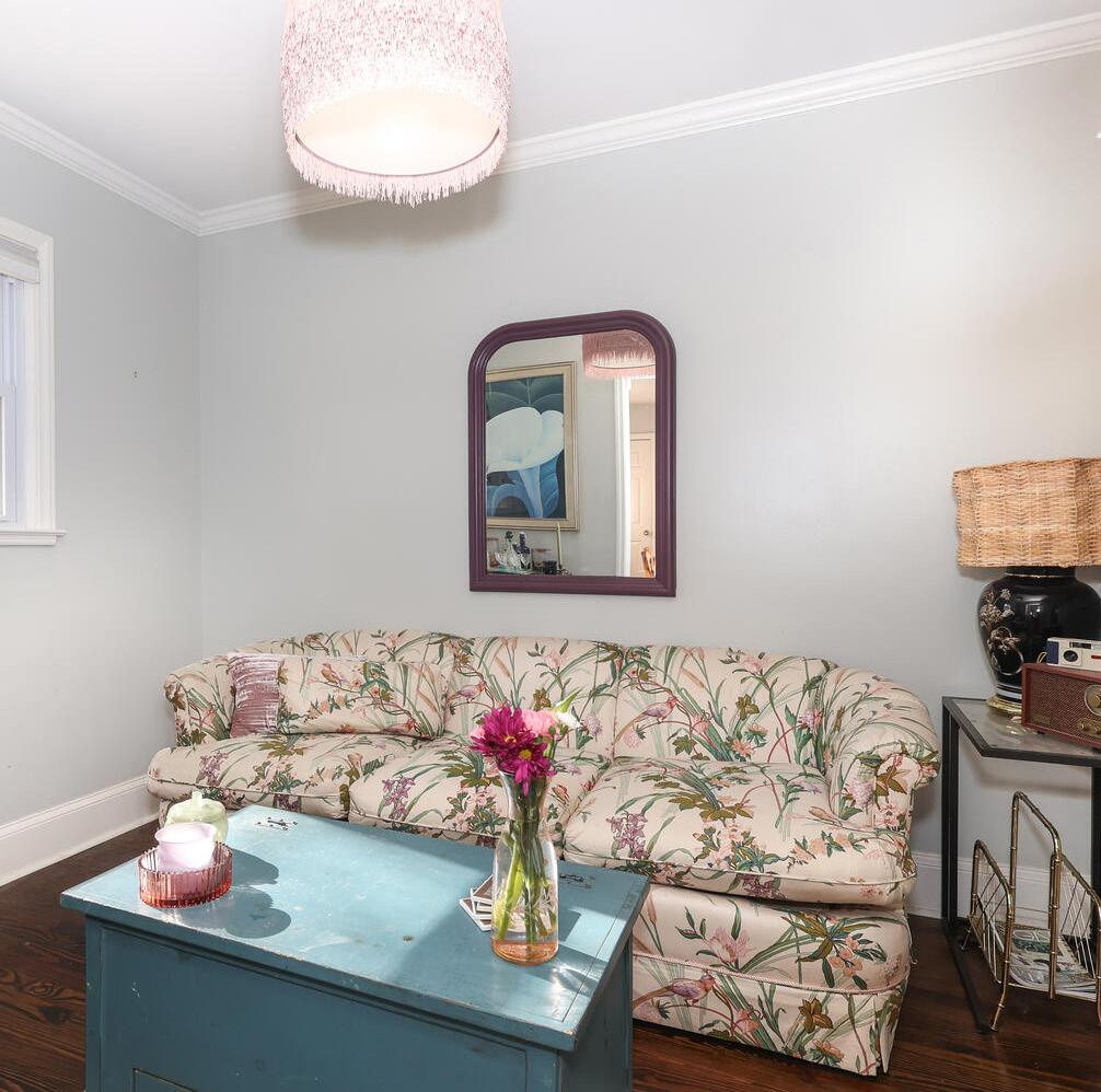 • The inside of this home is full of charm, warmth, and convenience. With a modern kitchen that flows seamlessly between the back entrance and the living room, a stunning bay window in the living room, and windows to the front of the house that let in the most beautiful golden hour light in the afternoon, there are so many practical and aesthetic things to enjoy. We have loved being able to work from home in the huge second bedroom turned office and gym, enjoyed movie nights from the cozy-yet-open living room, and have created so many memories hosting friends and loved ones for extended stays and gamenights. At the end of the day, the primary bedroom has been a true sanctuary, situated perfectly across the house from the rest of the bedrooms, and spacious enough for our king size bed and extra furniture.