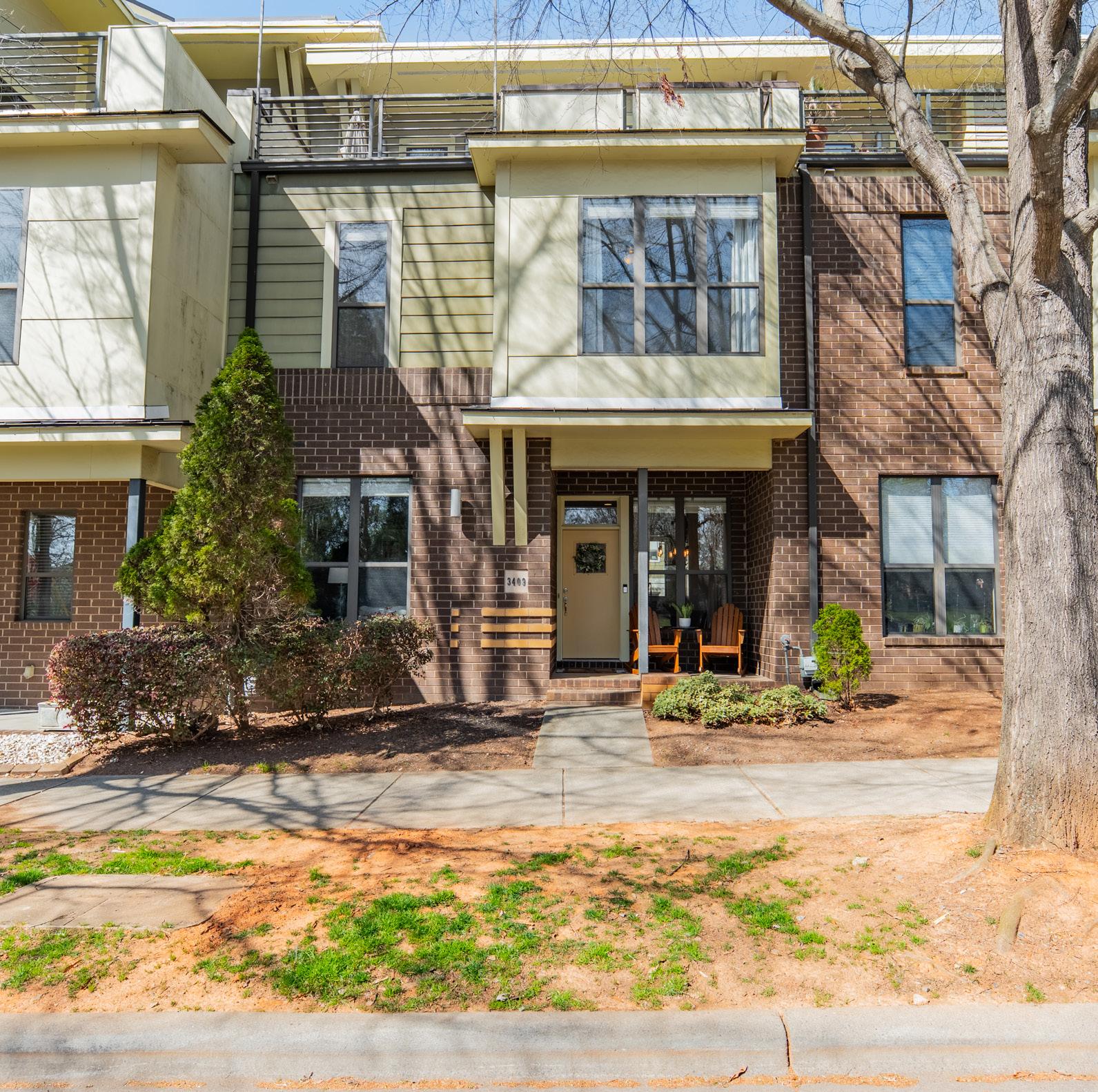 Public Rmrks: Welcome to Steel Gardens — one of NoDa's most sought-after townhome communities. This light-filled 3story home delivers the perfect blend of urban energy and laid-back livability with 1,593 sq ft, 2 bedrooms, 1.5 baths, and a show-stopping 299 sq-ft rooftop terrace overlooking North Charlotte Park. There is always ample parking for you and guests, so no worries there. The main level features an open-concept kitchen and family room with fireplace, a fenced private patio, and a welcoming front porch — ideal for entertaining or a quiet evening in. Upstairs, you'll find the primary suite and guest bedroom with convenient upper-level
