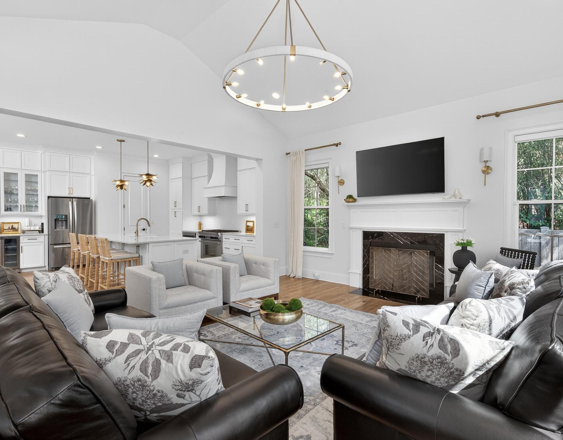 Public Rmrks: Experience refined living in this stunning newer-construction residence located in the heart of SouthPark. Built in 2020 with an emphasis on quality and craftsmanship, this home showcases custom designer finishes, rich hardwood flooring, an airy open layout, and impressive ceiling heights—10 feet on the main level and 9 feet upstairs. The gourmet kitchen is a true showpiece, offering pristine white quartz countertops, custom cabinetry, premium stainless steel appliances, an oversized center island, and a dedicated coffee/bar niche with a beverage refrigerator. A walk-in pantry provides exceptional storage. The vaulted family room creates an inviting atmosphere with its elegant gas fireplace, complemented by a private study and full hall bath on the main level. The luxurious primary suite is conveniently situated on the main floor and features vaulted