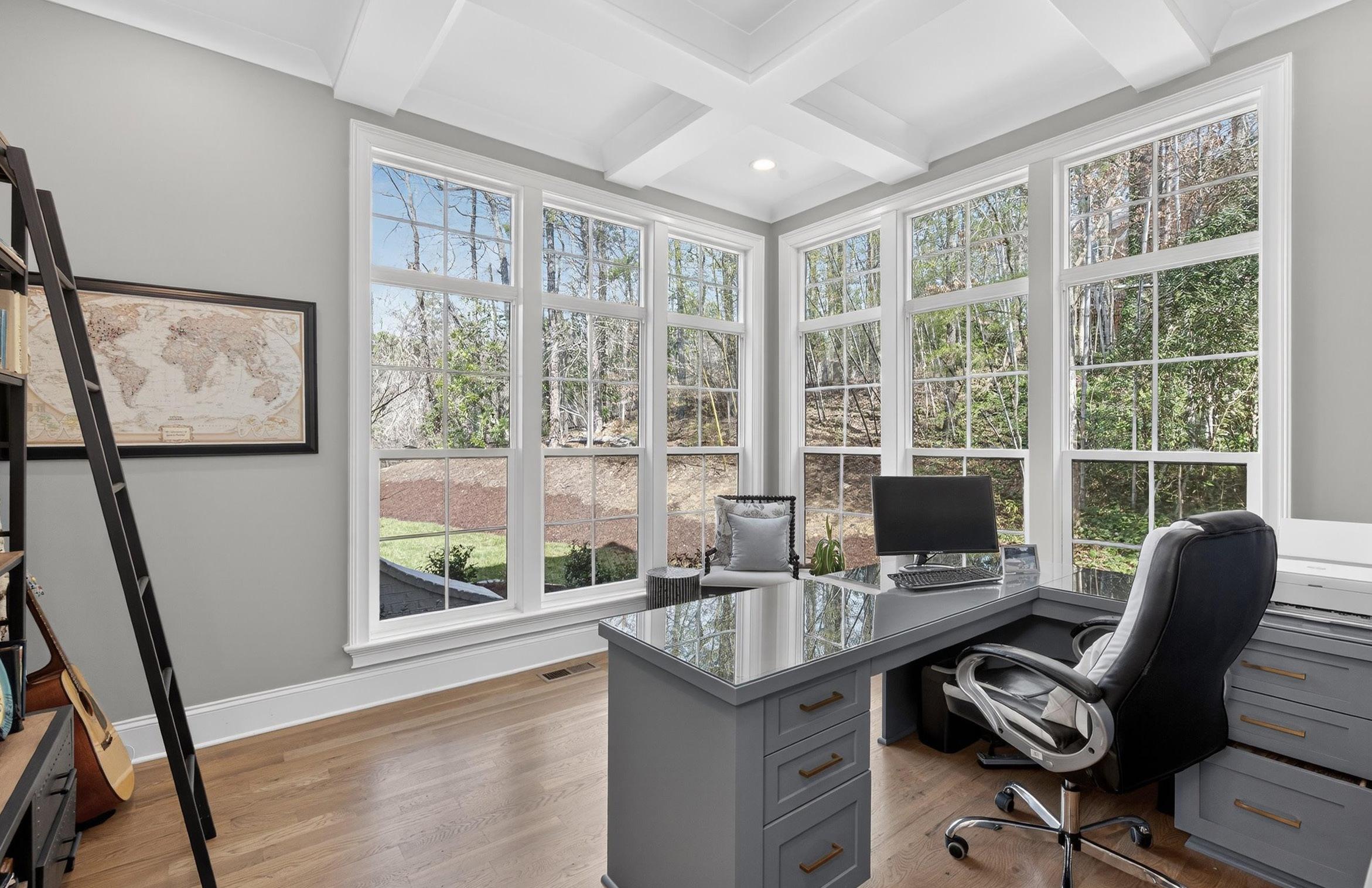 Experience refined living in this stunning newer-construction residence located in the heart of SouthPark. Built in 2020 with an emphasis on quality and craftsmanship, this home showcases custom designer finishes, rich hardwood flooring, an airy open layout, and impressive ceiling heights—10 feet on the main level and 9 feet upstairs. The gourmet kitchen is a true showpiece, offering pristine white quartz countertops, custom cabinetry, premium stainless steel appliances, an oversized center island, and a dedicated coffee/bar niche with a beverage refrigerator. A walk-in pantry provides exceptional storage. The vaulted family room creates an inviting atmosphere with its elegant gas fireplace, complemented by a private study and full hall bath on the main level. The luxurious primary suite is conveniently situated on the main floor and features vaulted ceilings, a spa-inspired bathroom, and a generous walk-in closet with direct access to the laundry room for effortless convenience. Upstairs, you’ll find an expansive bonus room, an office niche, and three spacious secondary bedrooms—each complete with its own en-suite bath and walk-in closet. Outdoor living is equally impressive with a screened porch overlooking the patio and a fully fenced, beautifully landscaped rear yard offering privacy and tranquility. Additional highlights include an attached two-car garage, abundant storage throughout, and a truly move-in-ready presentation. Moments from premier SouthPark shopping, dining, and amenities, this is a rare opportunity to own a thoughtfully crafted home in one of Charlotte’s most desirable locations. Don’t miss it.