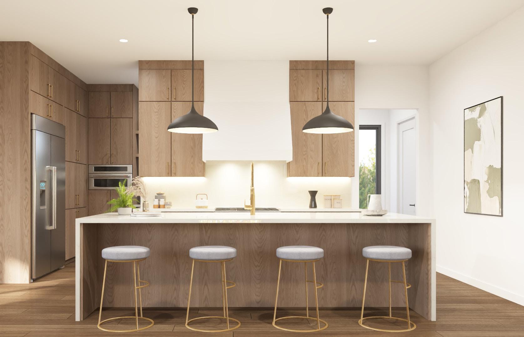 • Premium quartz countertops throughout