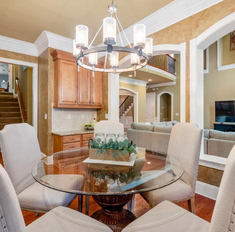• Host unforgettable dinners in the formal Dining Room, accented by detailed ceiling work and elegant trim— perfect for both grand occasions and intimate meals.