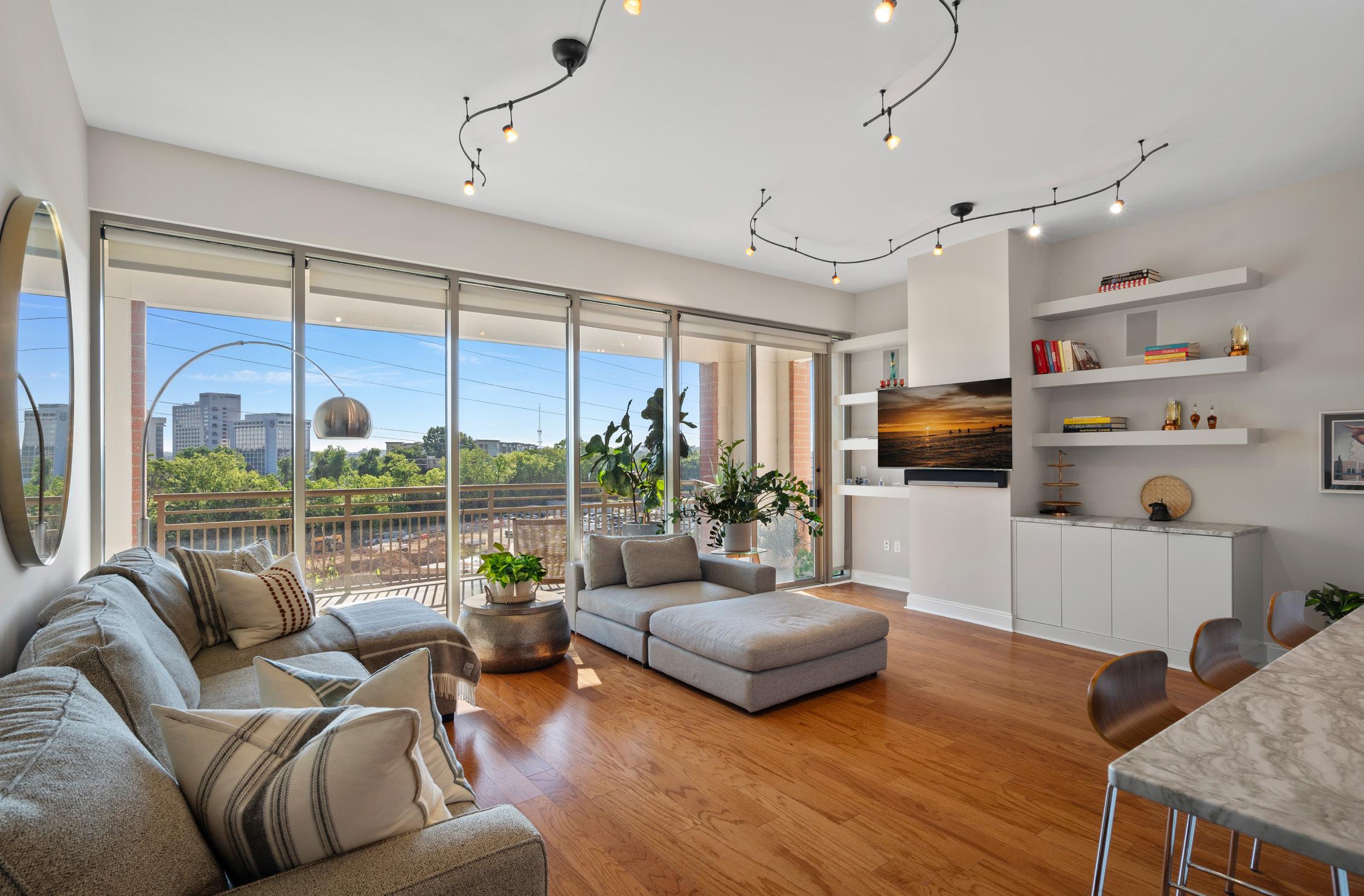 Public Rmrks: STUNNING 4th Floor Corner Unit at the Luxurious Royal Court Condominiums! Modern Elegance truly describes this beautifully appointed condo. The finishes & details are exquisite w/ its newly renovated kitchen (2019) featuring custom cabinetry, under cabinet lighting, VIKING appliances, leathered quartzite counters, breakfast bar, pendent lighting & two pantries. Beautiful floor to ceiling windows fills the living room with an abundance of natural light & fabulous views. Primary bedroom with a large walk-in closet & great views. Custom closets. Laundry/utility room. Heat Pump (2022). Open floorplan. Wood flooring throughout (2022). Enjoy lifestyle living w/ all the community amenities - concierge, resort style pool/spa, cabana, outdoor lounge & fireplace, fitness center & the ROCO lounge/business center. Royal Court is situated in picturesque Dilworth & just minutes to Southend, center City, Midtown, Dowd , Panther Stadium, light rail, trolly stop, dining & shopping.