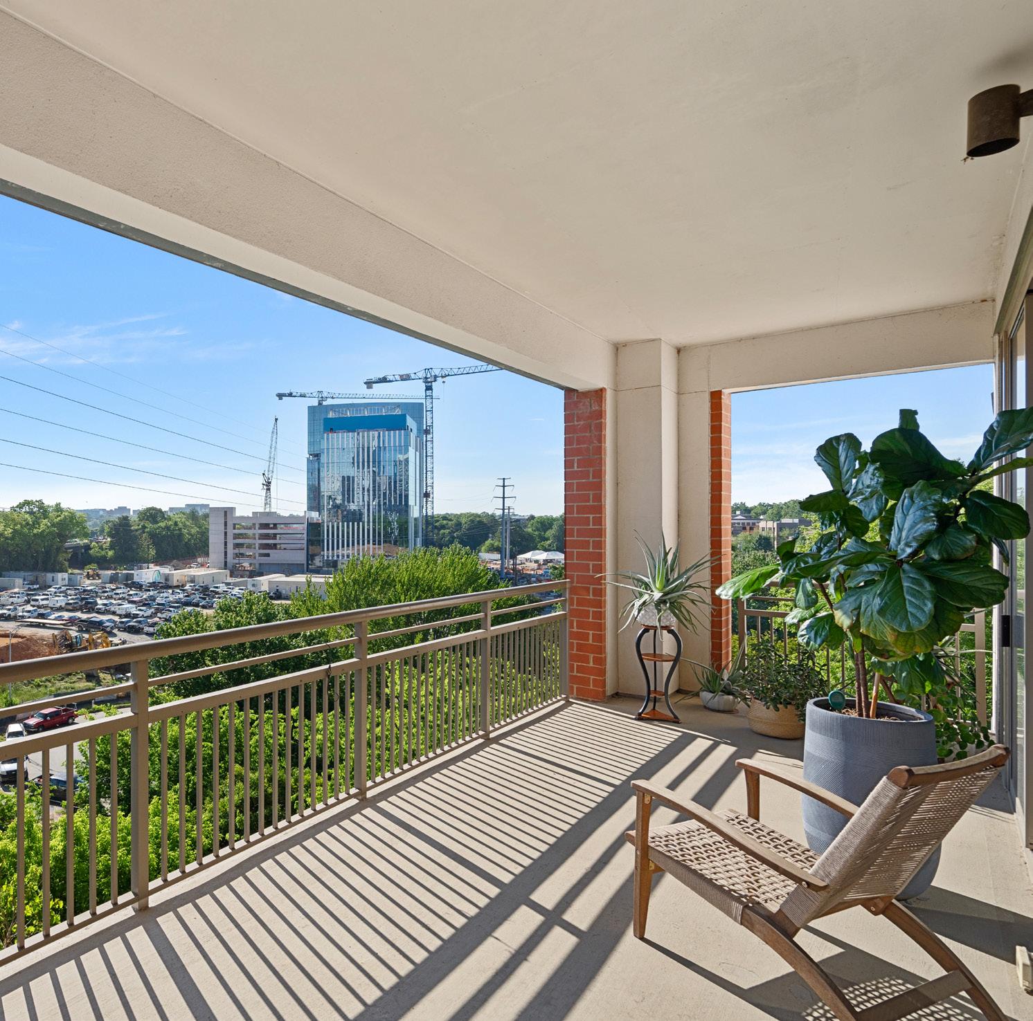 • A generously sized covered balcony with views of the city and midtown Charlotte areas.