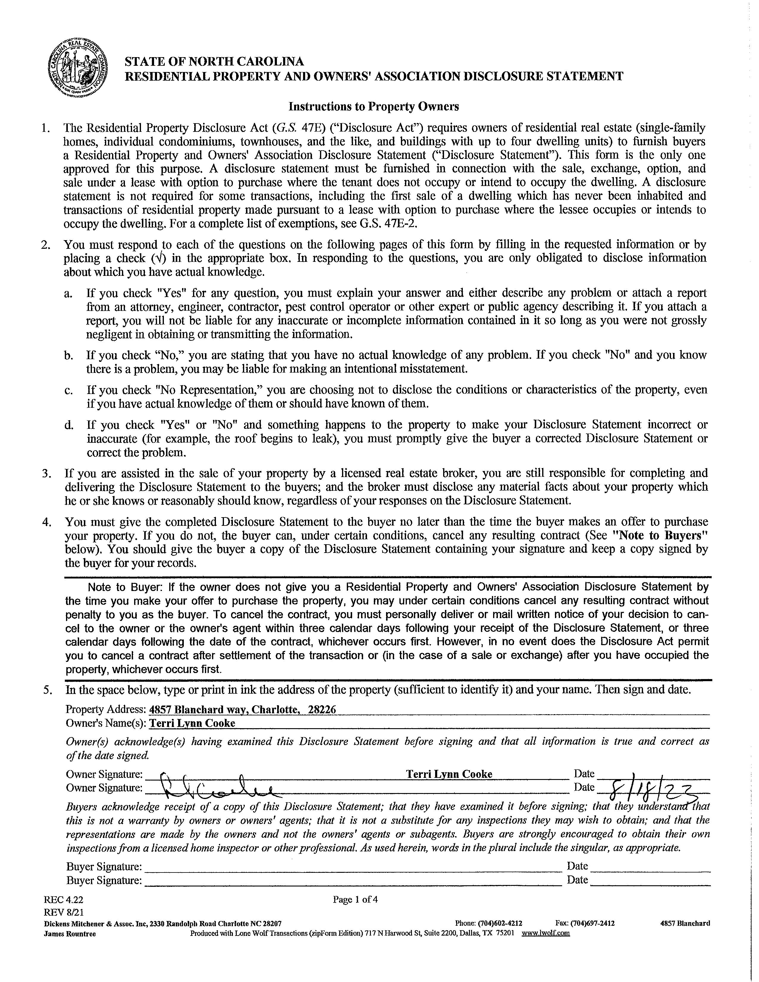 4857BlanchardWay,Charlotte,NorthCarolina28226-0505