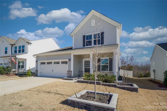 Like new 2 story home in Sutter’s Mill located just minutes from I-77 and close to many amenities off of exit 42. This modern home features an open floor plan with the primary bedroom on the main floor which does include a closet system. An extended patio that overlooks the woods is perfect for entertaining. The kitchen includes an expansive island, granite counters, coffee/dry bar, subway backsplash and double door pantry. You have a drop zone and a laundry room with folding table just as you enter from the double car garage. A loft upstairs is the perfect setting for movie night. A private office upstairs makes working from home a breeze. Two additional bedrooms w/ walk in closets complete the upper level. Stone planter beds were added to the front and sides for additional curb appeal. Sutters Mill features a long walking trail and is convenient to Lake Norman State Park, Mooresville, Downtown Troutman and Daveste Vineyards.
