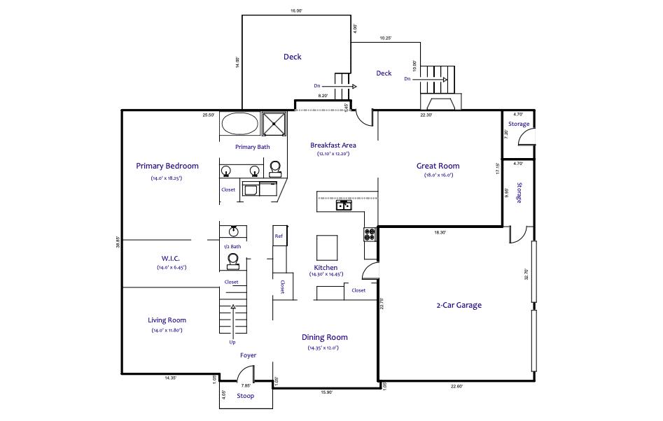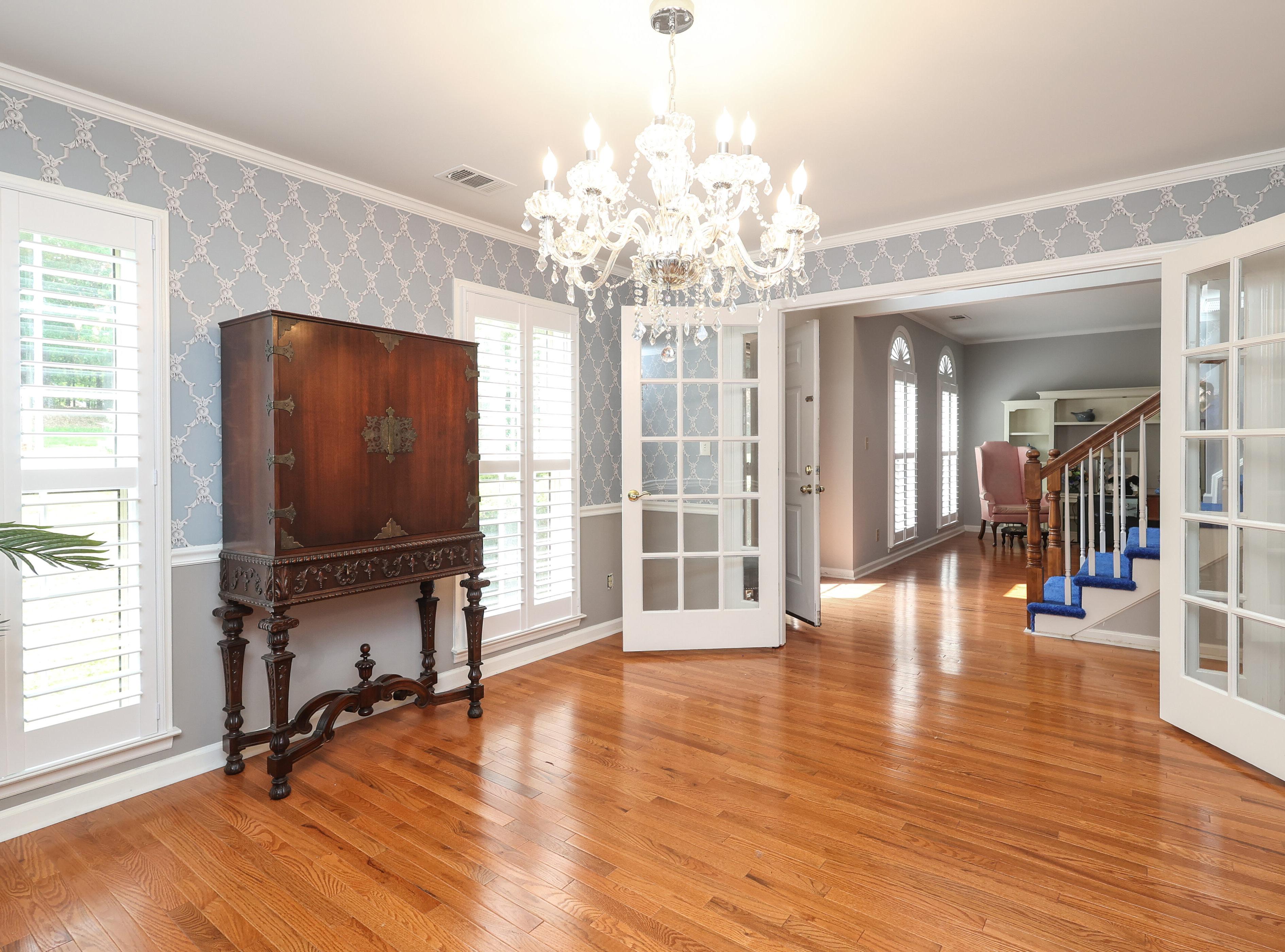 Public Rmrks: Welcome to this elegantly appointed all-brick residence in the highly desirable Colvard Park neighborhood, offering four bedrooms, two and a half baths, and main-floor living in a serene, park-like setting. Enter through a gracious two-story foyer, leading to the living and dining rooms with new hardwood floors and French doors. The kitchen showcases an abundance of storage, generous counter space, walk-in pantry, and thoughtful updates including new quartz countertops, refreshed cabinetry with updated hardware, new sink and faucet, induction range, and stylish tile backsplash. The adjacent breakfast room with breakfast bar opens to a newly constructed two-level deck, complete with convenient pet ramp. The main-floor primary suite features vaulted ceilings and a custom California Closets walk-in closet. The primary bath has been updated with new quartz countertops, separate tub and shower, and bidet. Additional main-floor living