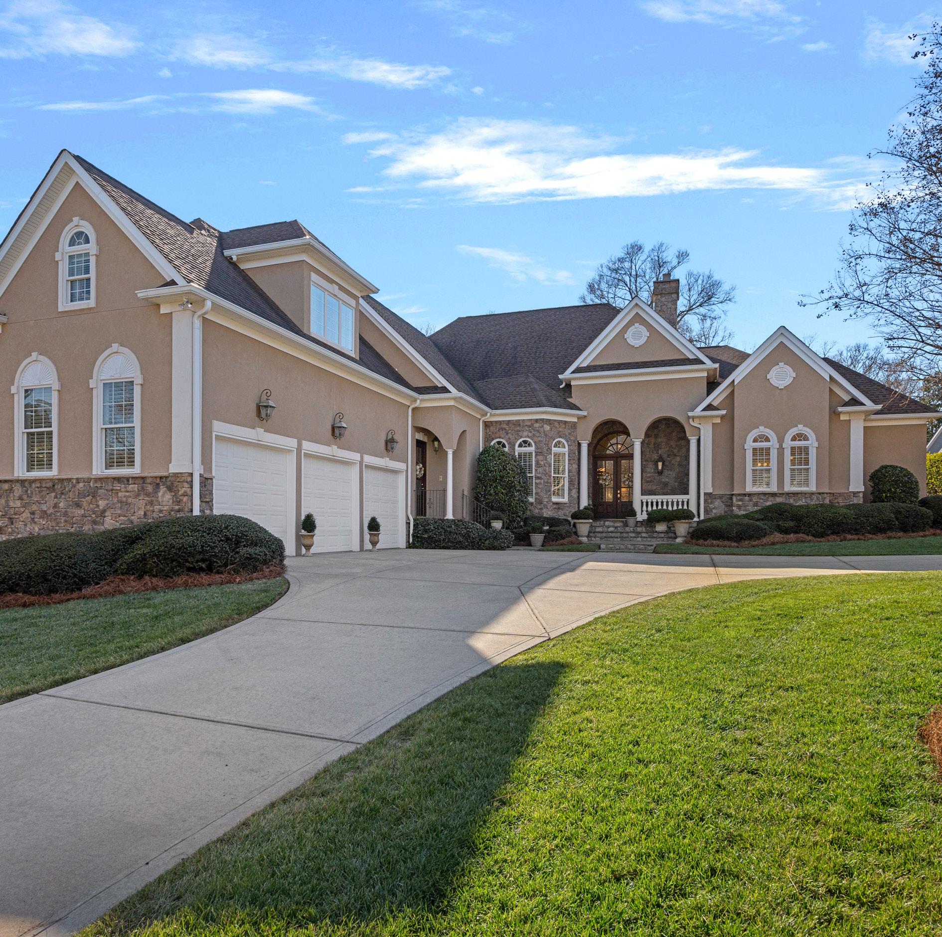 • Three garage bays, courtyard stye, and circular driveway