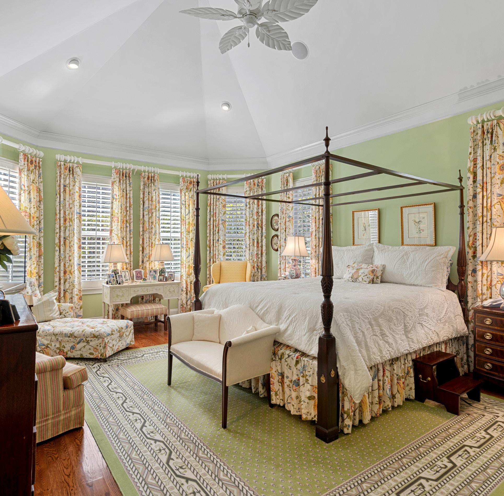 • Vaulted ceilings and bay window offering seven windows with plantation shutters