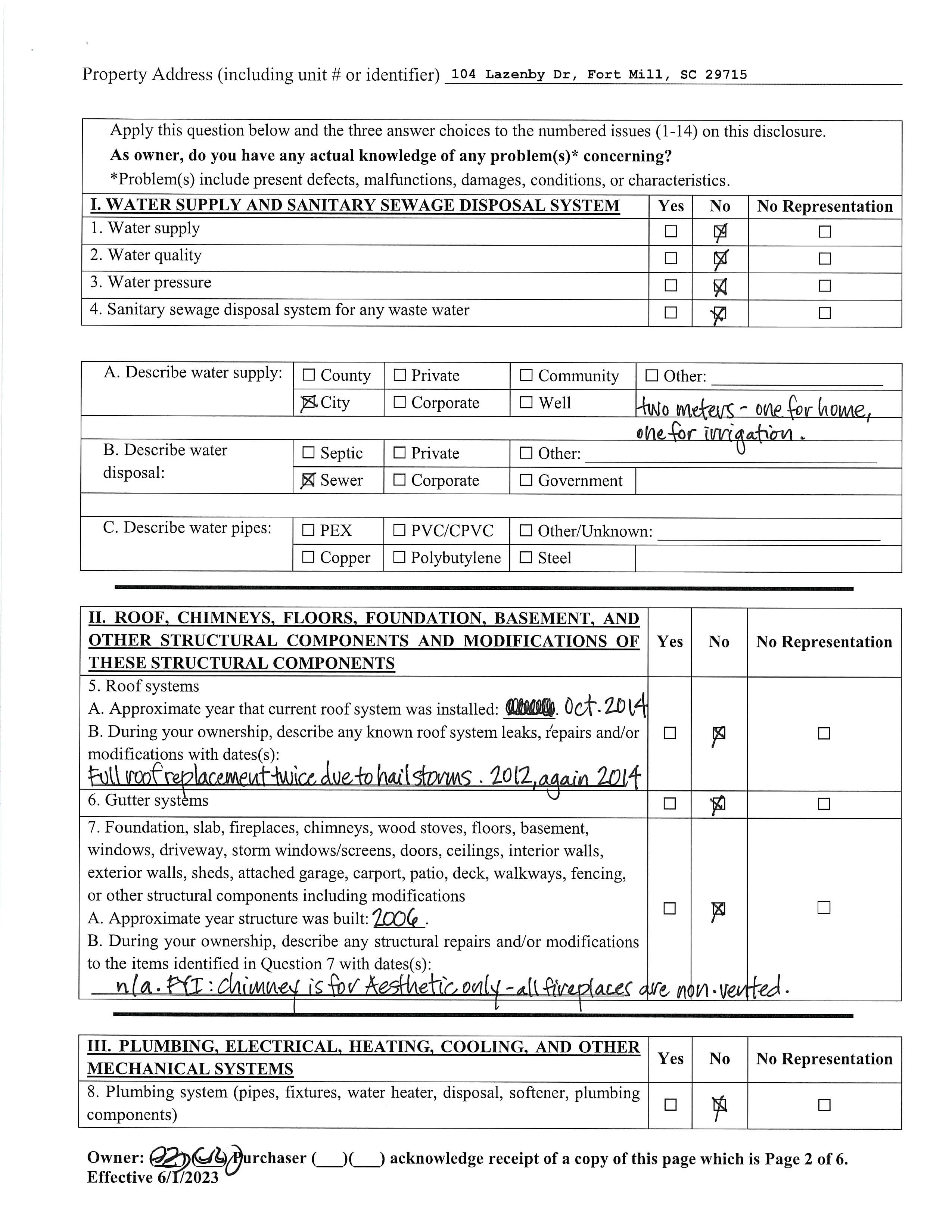 • Custom designed by sellers and constructed in 2006