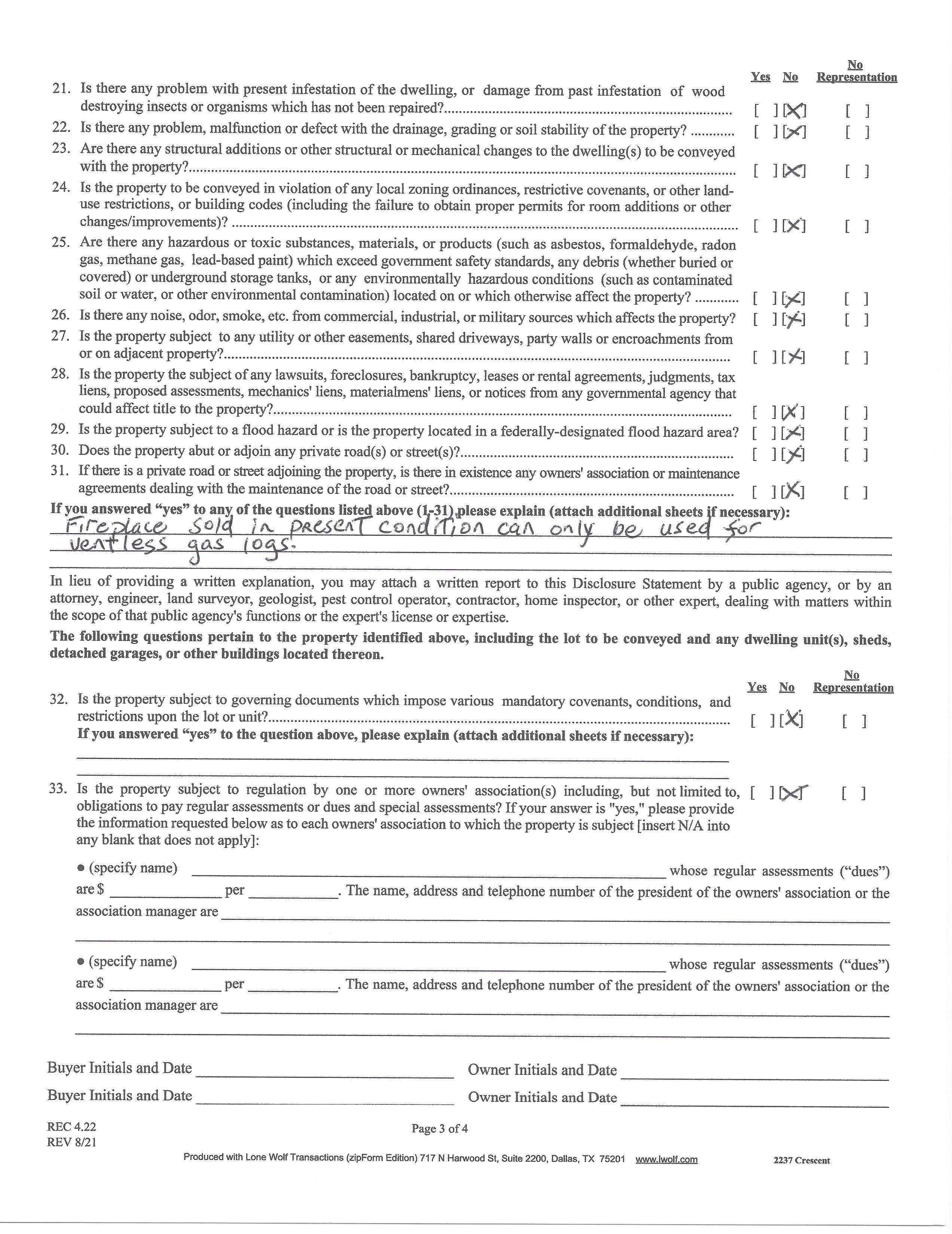 Purchaser(s)acknowledgereceiptofacopyofthisDisclosureStatement;thattheyhaveexamineditbeforesigning;that theyunderstand thatthisisnotawarrantybyownerorowner'sagent;andthattherepresentationsaremadebythe ownerandnottheowner'sagent(s) orsubagent(s).