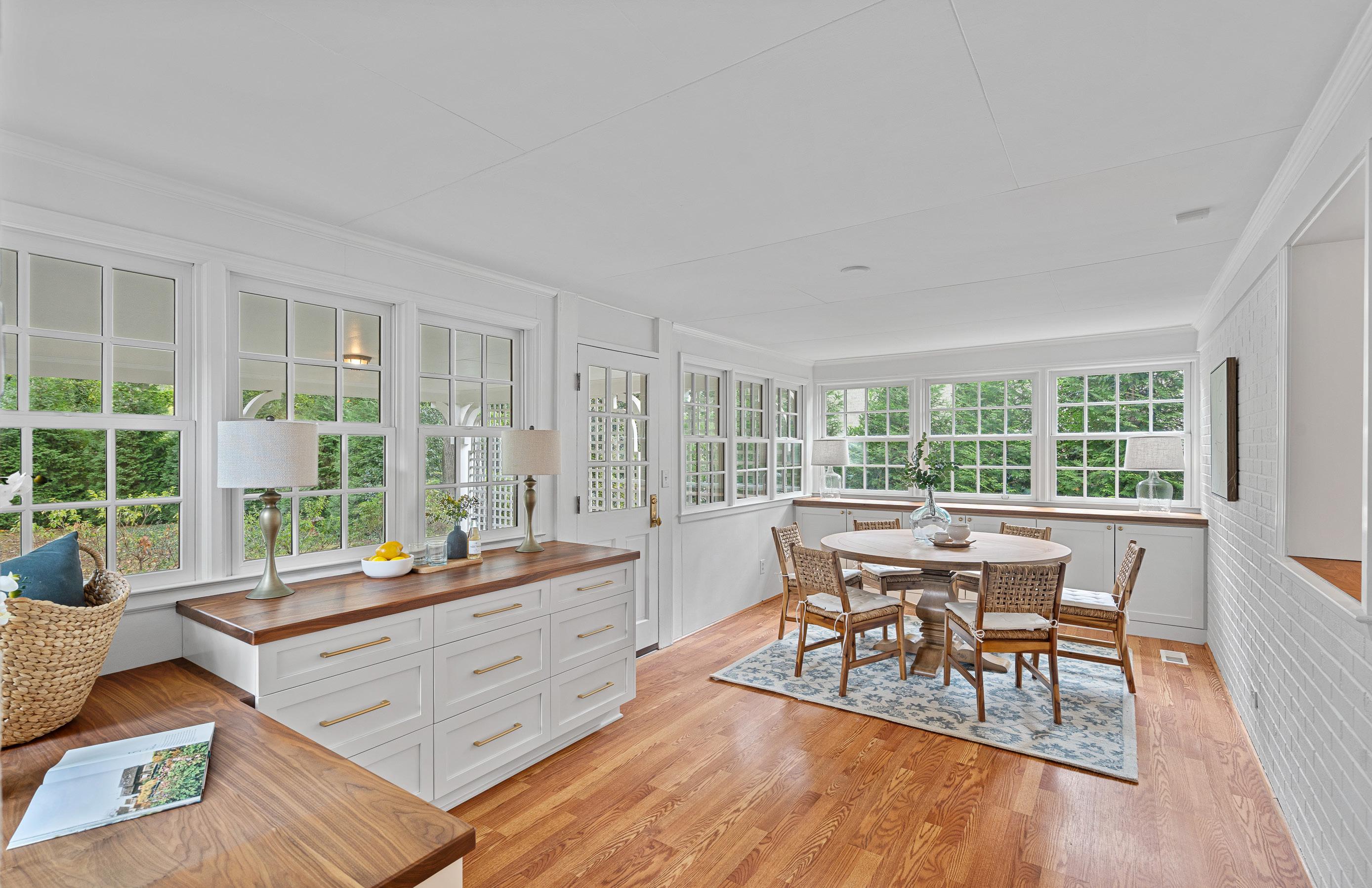 • Inviting sunroom with additional built-in cabinetry for extra storage and windows that flood the space with natural light