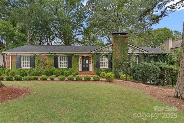 Public Rmrks: Timeless elegance and classic charm define this beautifully updated 1954 ranch nestled in the heart of Old Cotswold neighborhood. Thoughtfully designed for both comfort and style, this 3-bedroom, 2 full-bath home was redesigned by the renowned architect Don Duffy and features a tastefully renovated kitchen with warm butcher block counters, custom cabinetry and elegant fixtures. The charming sunroom offers additional custom cabinetry for extra storage needs and an abundance of windows, flooding the room with natural light. The living room exudes sophistication with custom built-ins accented by soft recessed lighting and a cozy gas fireplace, while a second fireplace in the den adds additional warmth and character. The beautifully updated baths complement the home's enduring style, while the very private, landscaped backyard provides an ideal retreat for outdoor enjoyment. The covered rear porch, formerly a 2-car carport, along with the beautiful stone patio is a wonderful area for outdoor living. Additional highlights include a whole-house gas generator which offers peace of mind and everyday convenience. Perfectly situated near premier dining, shopping, and Uptown Charlotte, this quintessential home blends classic design with timeless modern comforts in a most sought-after neighborhood.
