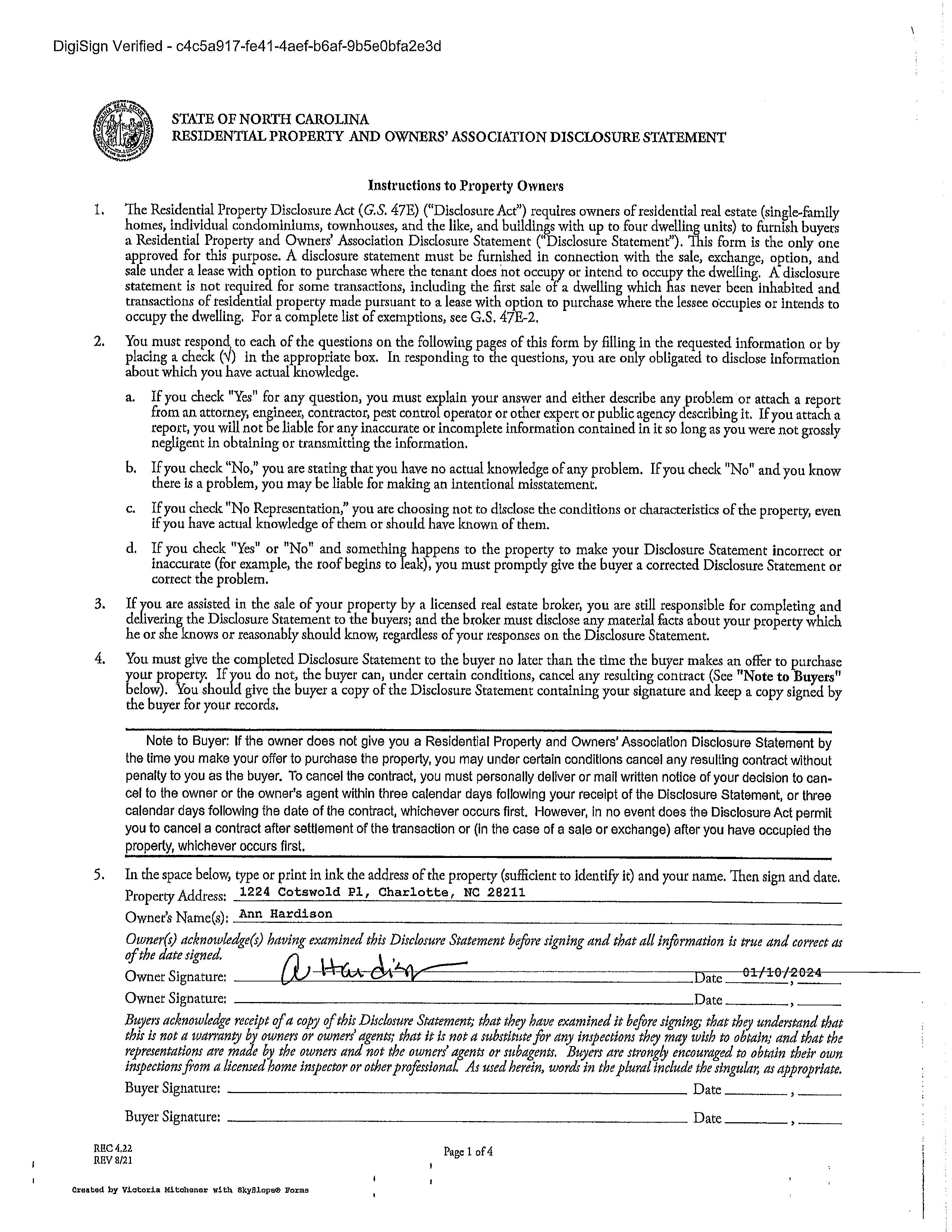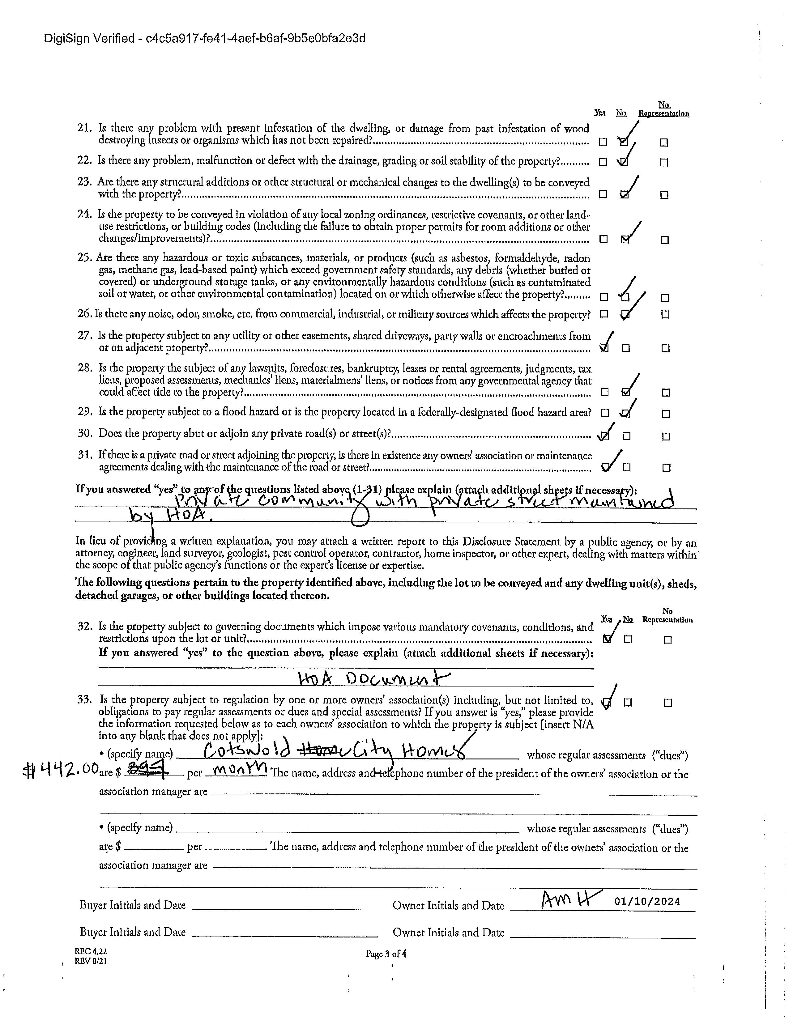Assumable: No Ownership: Seller owned for at least one year