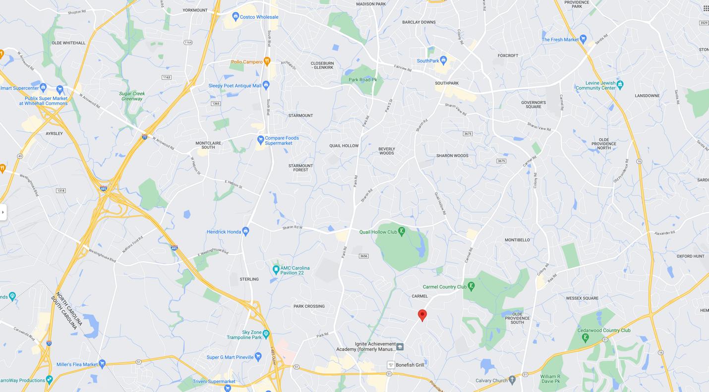 Directions: South on Colony Rd, Right on Carmel, left onto Blanchard Way OR East on Pineville-Matthews Rd, Left on Carmel, Right onto Blanchard Way.