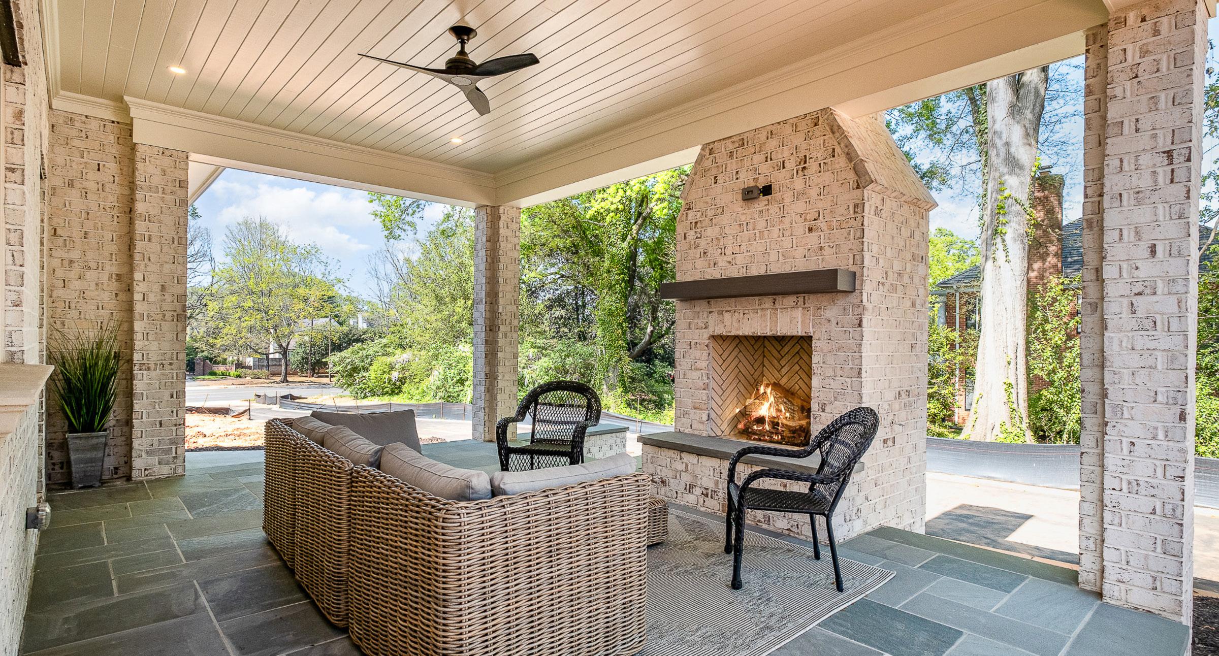 • Covered back porch with gas logs or wood burning fireplace with gas starter