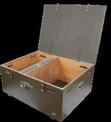 Munitionskiste Schweizer Armee gebraucht in sehr gutem Zustand, pulverbeschichtet, mit Dichtung am Deckel, Klappverschluss und Traggriff, sehr robust und stabil, aus Metall