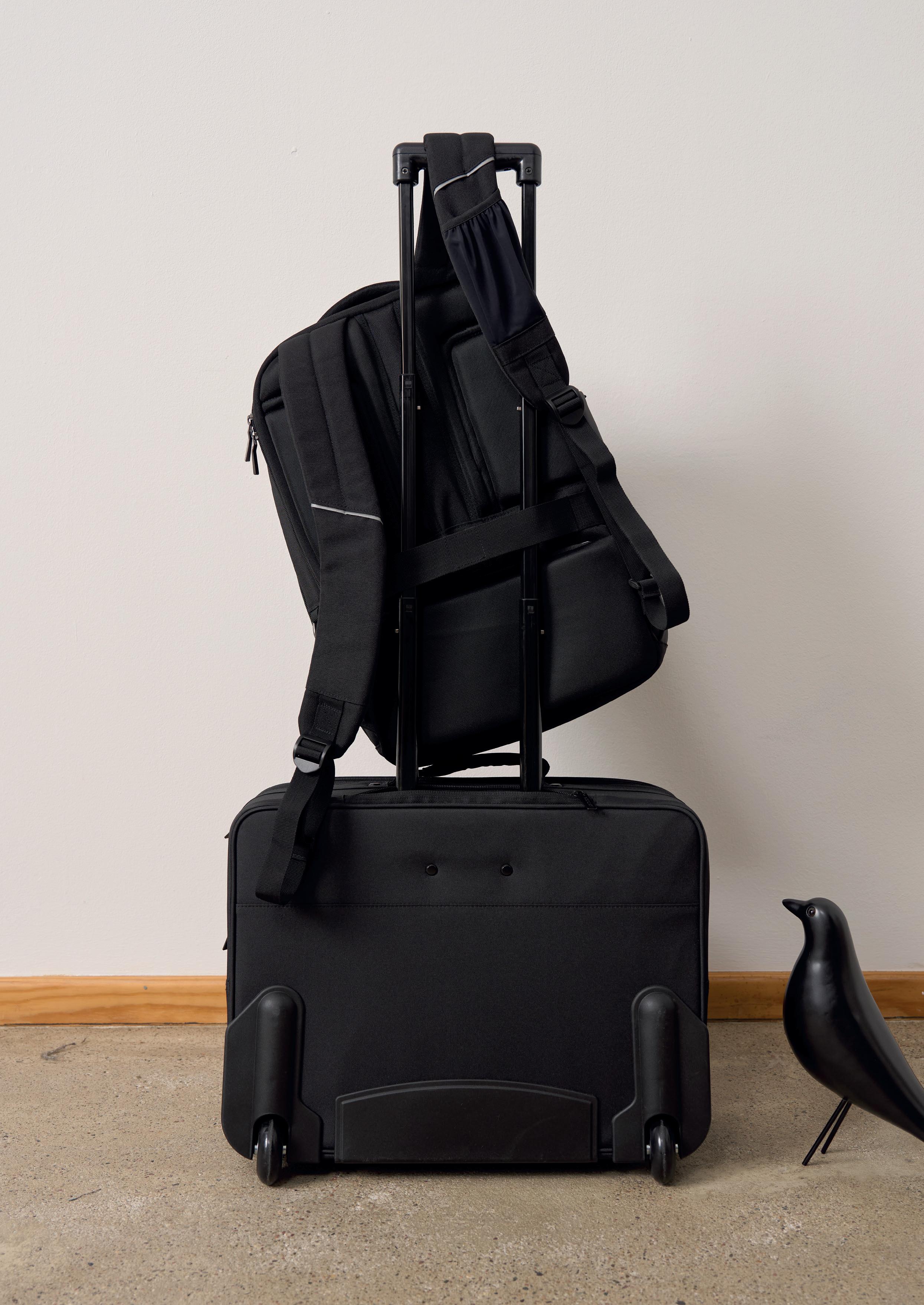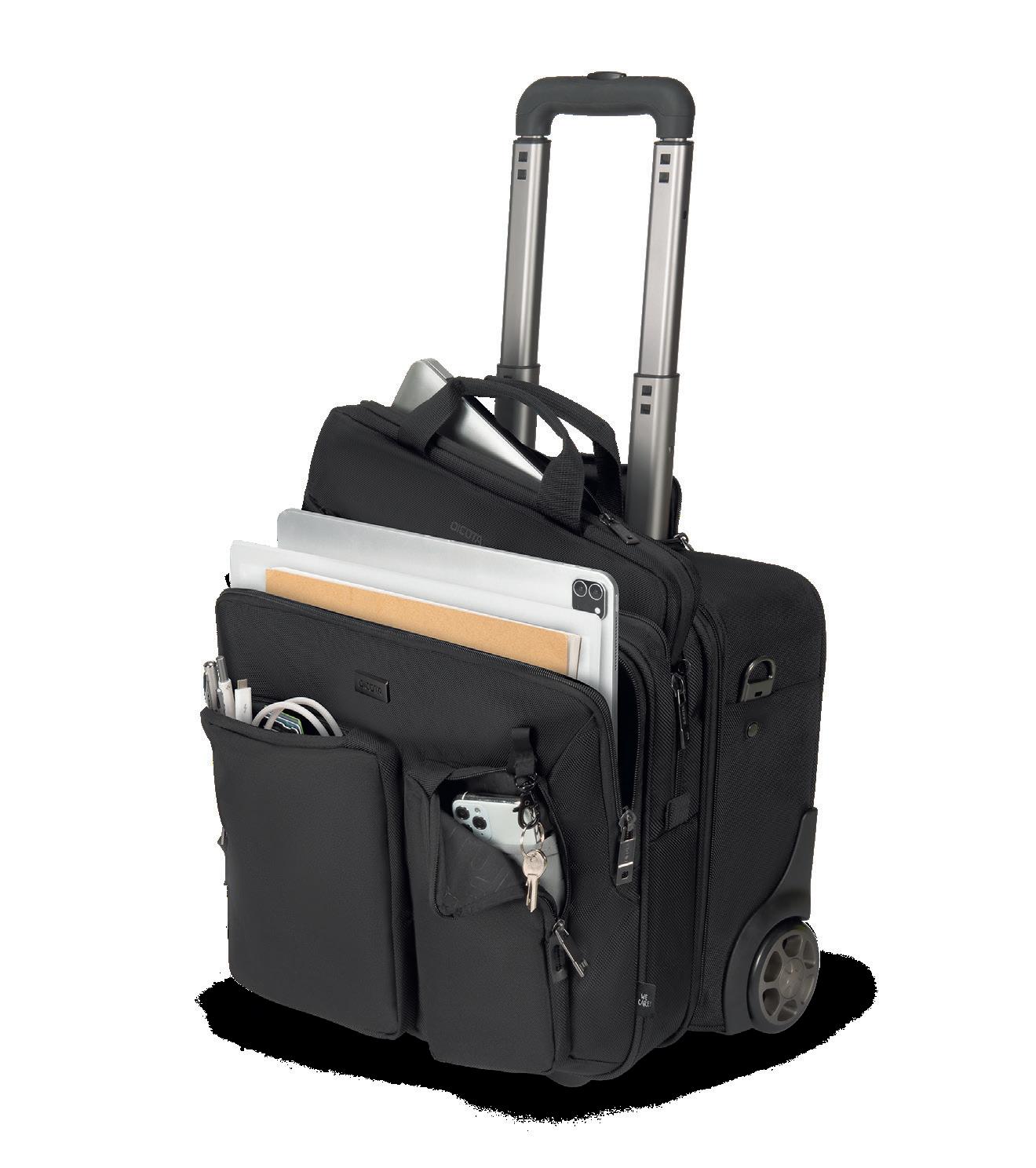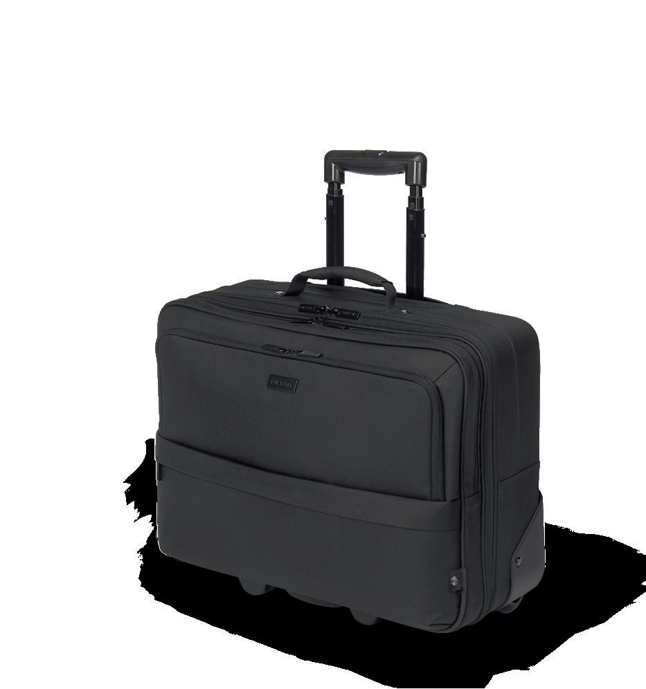 ‘Pull instead of carry’ is the motto for the trolley, referred to as the ‘Roller’ in DICOTA's technical jargon. It offers maximum convenience for private and business travel. Thanks to the well -designed interior and the separate, padded laptop compartment, all your items have their place and can be stored securely. The quality of the wheels and the telescopic handle are important when choosing a trolley. Incidentally, these components are easy to replace at DICOTA – just like changing a car tyre.