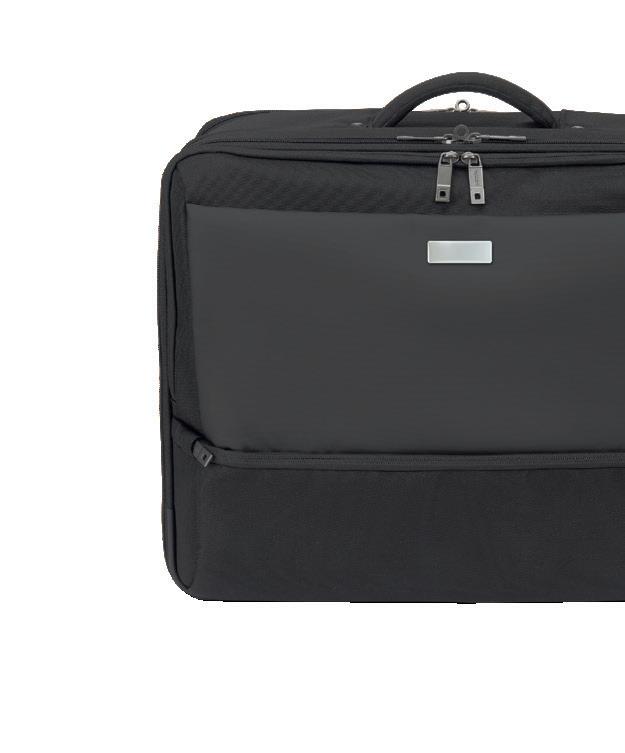 – Ergonomic parts for carrying comfort such as padded handles, adjustable shoulder straps and trolley fastenings are standard features.
