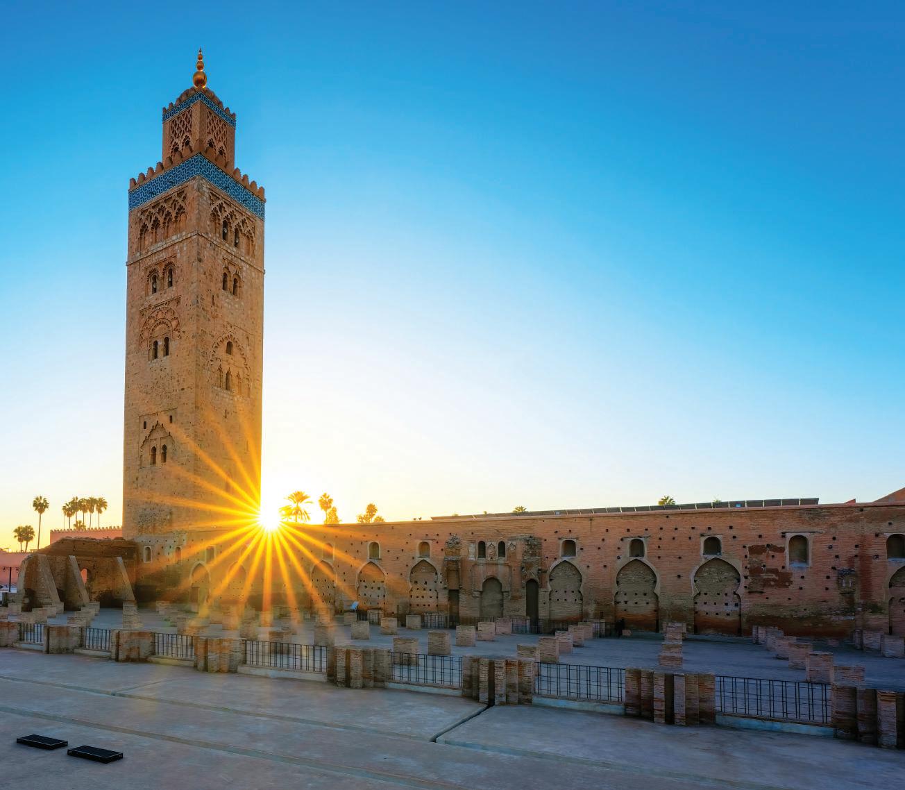 La mañana la dedicamos a los jardines de Menara, las tumbas saadianas y la mezquita de Koutoubia. Antes, con un grupo descolgado del original, fui a desayunar en uno de los hoteles principales del planeta, el Mamounia: una construcción art decó, que atendía a las particularidades arquitectónicas marroquíes, acotado por unos jardines impecables, en los que se veía trabajar a un ejército de jardineros, afanoso por mantener intacta la perfección. La visita al hotel es ya un acontecimiento arquitectónico y plástico, pero dormir en él debe ser un tema álgido para el bolsillo. Ni siquiera indagamos por semejante posibilidad.