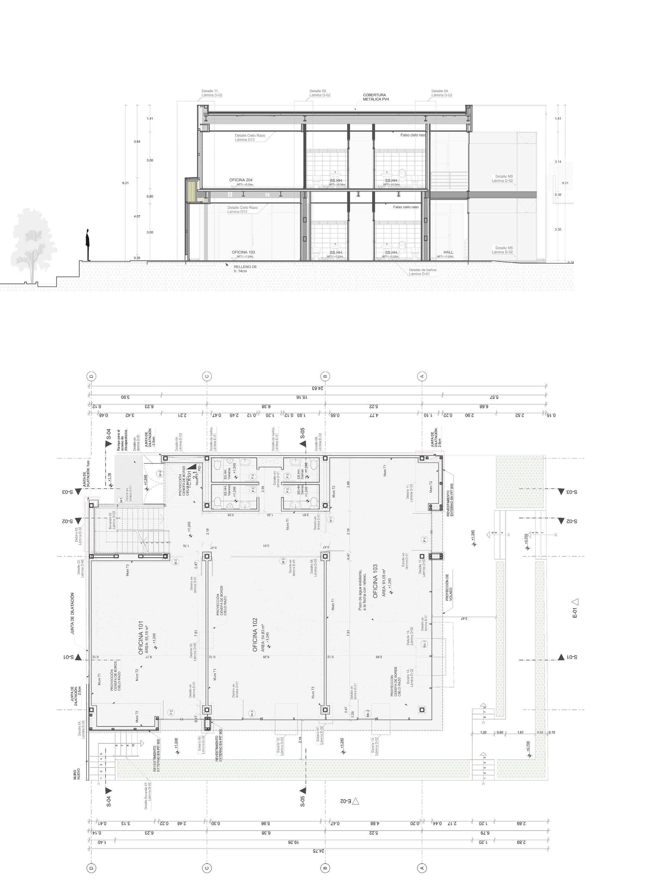 Megacentro 101 office project showcases innovative architectural design within an industrial context. Located in an emerging Latin American city’s industrial park, the project seamlessly integrates pre-painted metal sheets for roofing and exterior walls with the pedestrian public realm. With a steel moment frame structural system and interior drywall featuring thermal and acoustic insulation, meticulous attention to detail ensures resolution of construction challenges. Leveraging BIM technology in ArchiCAD, the project achieves a high level of detail in the constructive system.