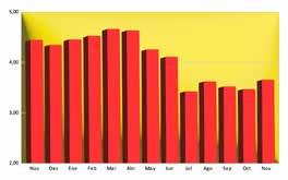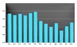 8,70 Máxima Anual 1,81 Mínima Anual 1,05 Promedio 11/22 1,10 Promedio 11/21 1,19