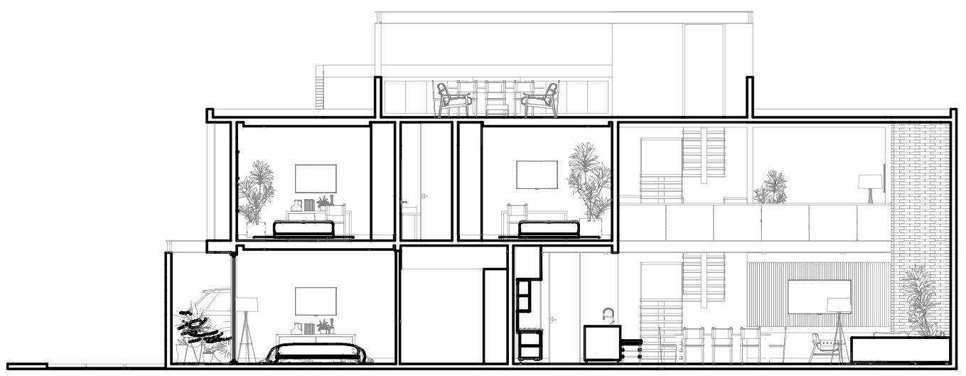 Por último la materialidad de la residencia se apoya en la madera, concreto, metal y ladrillo, creando ambientes que se perciben contemporáneos y a su vez resisten el paso del tiempo.