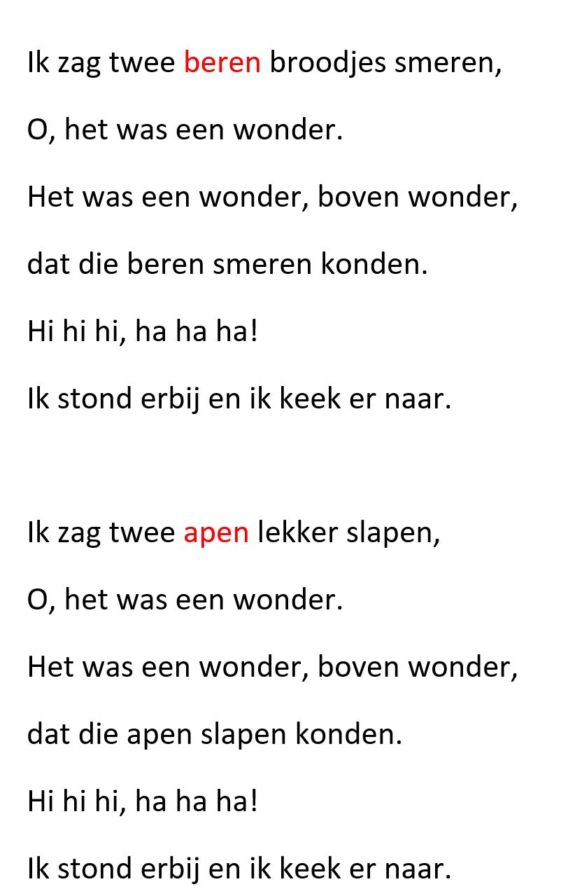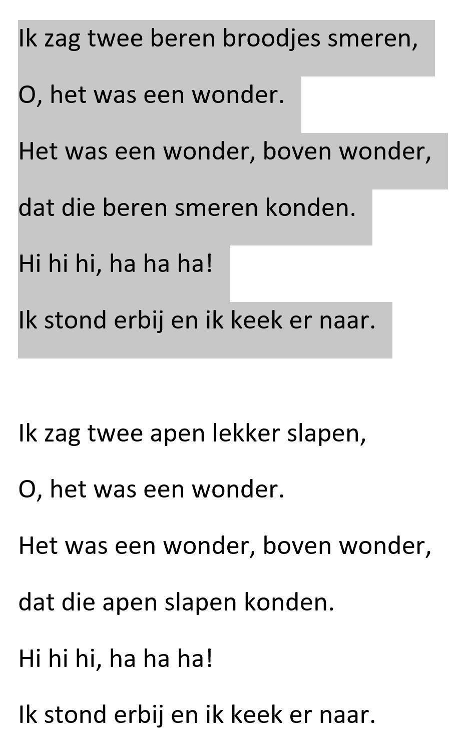 Je kent vast en zeker het onderstaande kinderliedje Ik zag twee beren. Hieronder vind je twee strofen uit het bekende liedje.