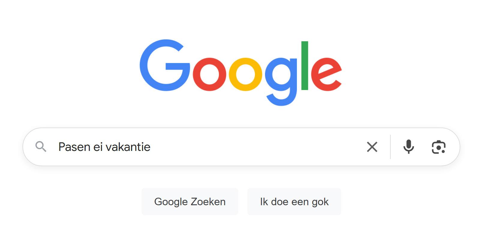 Gebruik de volgende drie zoekwoorden: Pasen, ei, vakantie.