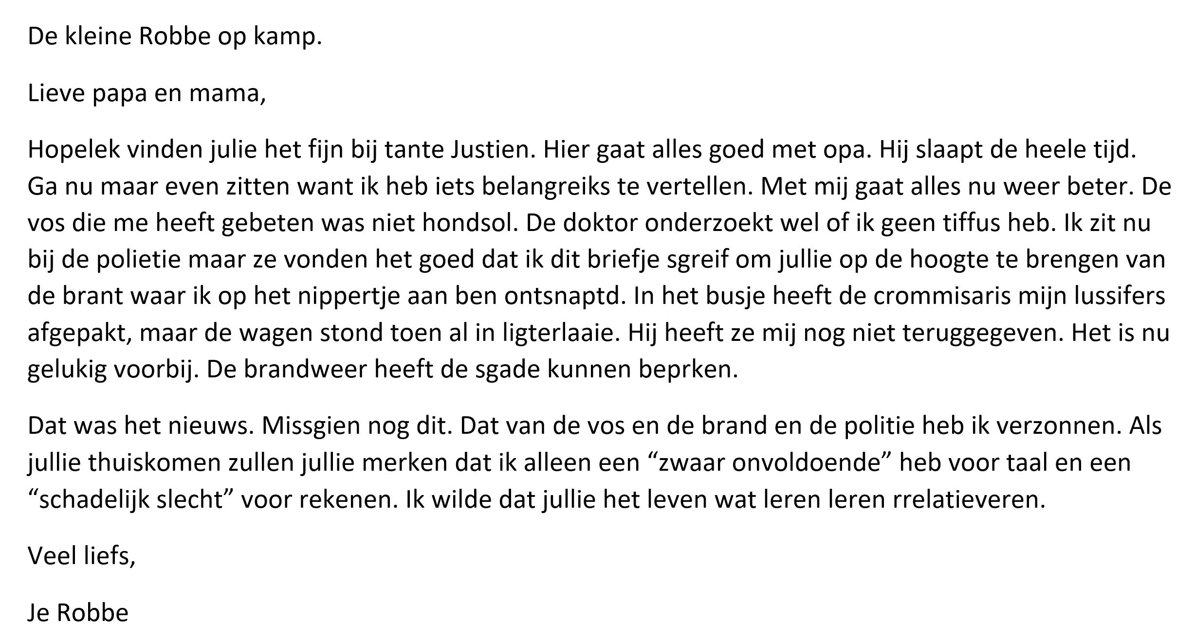 Verbeter Robbe zijn spelfouten in de mail naar zijn ouders.