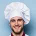 De kok maakt het eten in drie grote klaar.