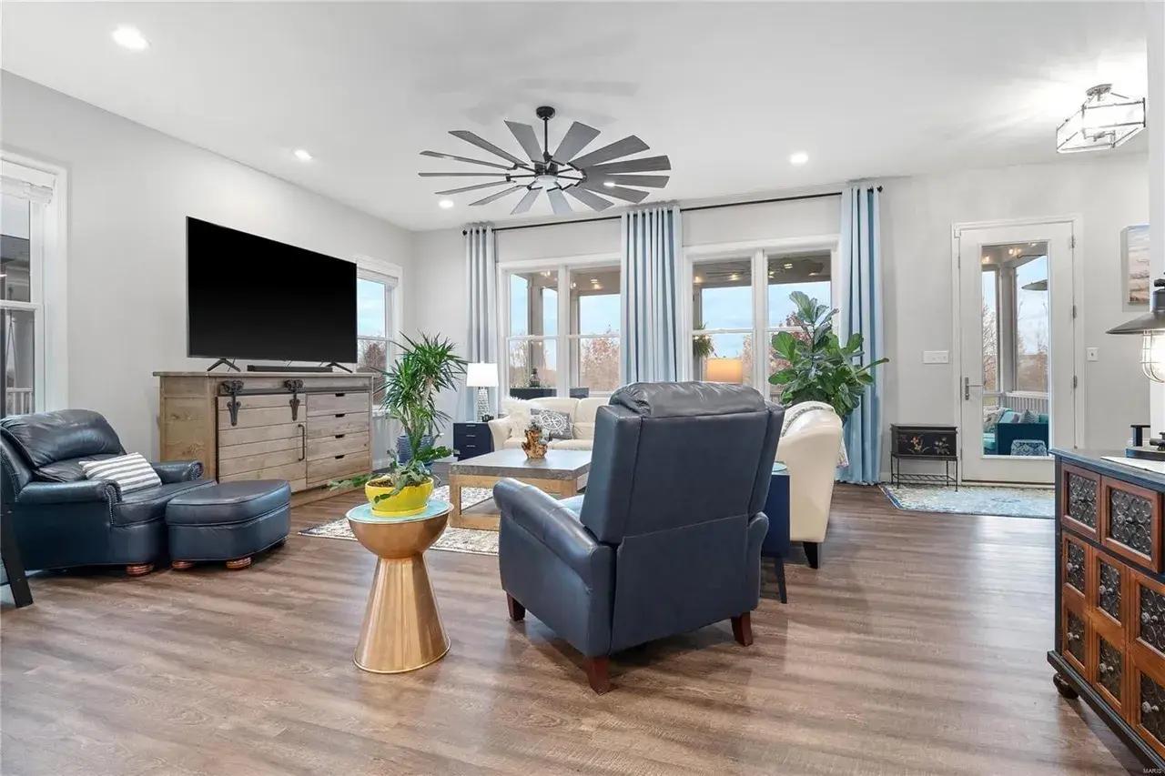This stunning 4,100+ sq ft atrium ranch sits on a quiet Oakville cul-de-sac and is filled with natural light,soaring windows,and an open floor plan designed for effortless living and entertaining.The main level features elegant details throughout? including a wet bar,stone hearth room fireplace,screened-in patio,and an expansive primary suite with a double-sided fireplace and spa-like bath.A lower-level MIL-style suite with a mini kitchen,wine cellar,rec spaces,and walkout bedrooms adds incredible versatility to this exceptional home