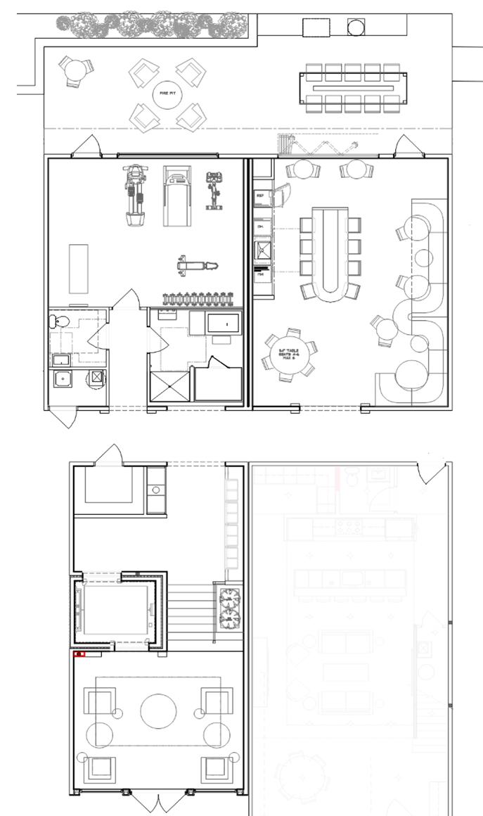 - Outdoor Community Garden Patio with Firepits and BBQ Grills