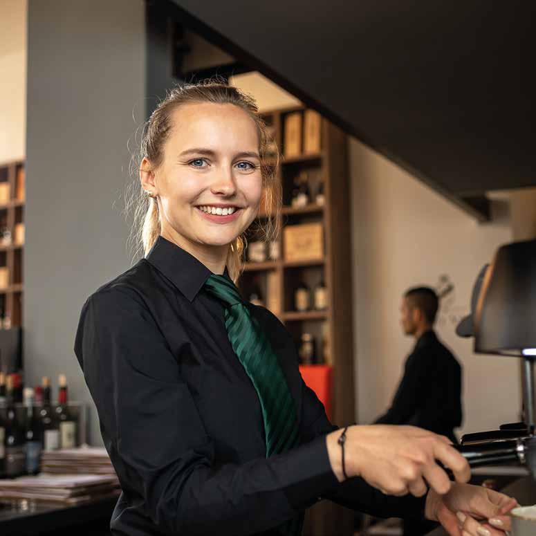 Ravioli mit Trüffelschaum. Hinter dem italienischen Begriff „Melanzane“ verbirgt sich die Aubergine, die sich mit der „Burrata“ genannten MozzarellaVariante bestens verträgt. Der Höhepunkt – falls dies noch zu steigern ist – liegt im Finalgang: Rosa gebratenes Rinderfilet auf zweierlei Püree vom Sellerie und von der grünen Petersilienwurzel mit Flower Sprouts an Portwein-Balsamicojus. „Flower Sprouts“ verrät seine Herkunft schon im Namen, es ist ein Gemüse, das aus der Kreuzung von Rosenund Grünkohl entstanden ist. Voilà!