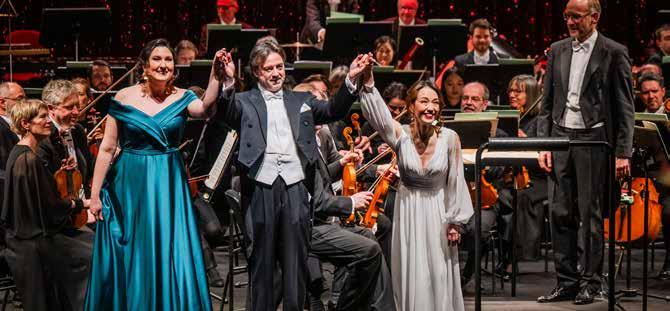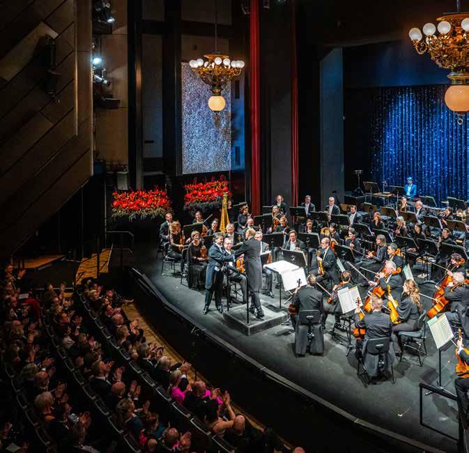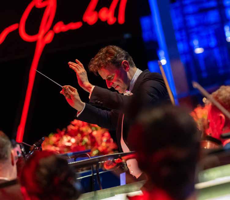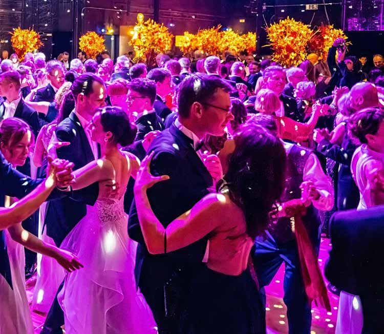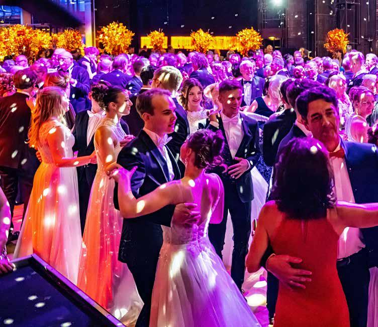 um nicht nur während ihrer Konzert- und Vorstellungsdienste die Augen ihres Publikums zum Strahlen zu bringen. In unzähligen kleinen und kreativen Konzertformaten an vielseitigen Orten der Stadt ist ihre Spielfreude, ihr Erfindungsreichtum und ihre Leidenschaft ebenso zu erleben wie auf den großen Bühnen des Opernhauses und der Stadthalle. Musikalischer Hochglanz ist dabei natürlich immer garantiert. Spätestens seit dem wunderbar schwungvollen Dirigat von Mambo! aus der West Side Story bei der Symphonic Opening Party, dem ersten Sinfoniekonzert der Saison 2025/2026, wissen wir auch, wie viel Energie und Tanzlust in unserem neuen Chefdirigenten steckt – und wie rasant sich seine gute Laune auf Orchester und Publikum überträgt. „Ich liebe Opernbälle“, verrät Benjamin Reiners, der schon zahlreiche Bälle musikalisch gestaltet hat, etwa an seinen vorherigen Theaterstationen in Kiel und Hannover. „Ich freue mich riesig darauf, jetzt auch an meiner neuen Arbeitsstelle endlich das Tanzbein zu schwingen!“ Liebe Gäste, Sie erwartet also am Opernballabend im Galaprogramm nicht nur ein erstklassiges musikalisches Feuerwerk, das Benjamin Reiners und die Robert-SchumannPhilharmonie für Sie zünden werden. Vielleicht dürfen Sie sich darüber hinaus den einen oder anderen Dance Move von unserem neuen Chef abschauen und sich auch auf dem Parkett von seiner unvergleichlichen Energie mitreißen lassen. In jedem Falle wird es: Fulminant!