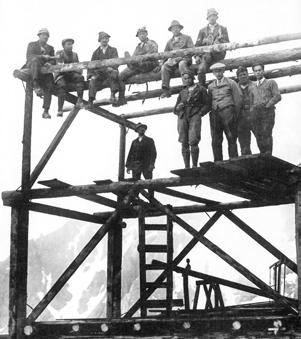 Der erste „Bewohner“ des Turmes und einsamer Überwinterer 1900/01 war Josef Enzensperger. Zusammen mit seinem Hund war er monatelang von der Welt abgeschnitten. Er verband wissenschaftliche Neugier mit bergsteigerischer Begeisterung und entwickelte die Grundlagen für Arbeit und Existenz an derartig exponierten Stellen. Angesichts der extremen Wetterbedingungen und -phänomene (siehe rechte Seite) kann man erahnen, wie schwierig das Leben am Gipfel der Zugspitze war. Etwas Erleichterung brachte erst der Bau der Tiroler Zugspitzbahn 1926.