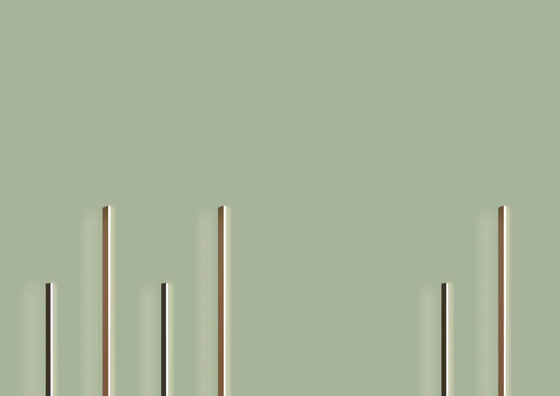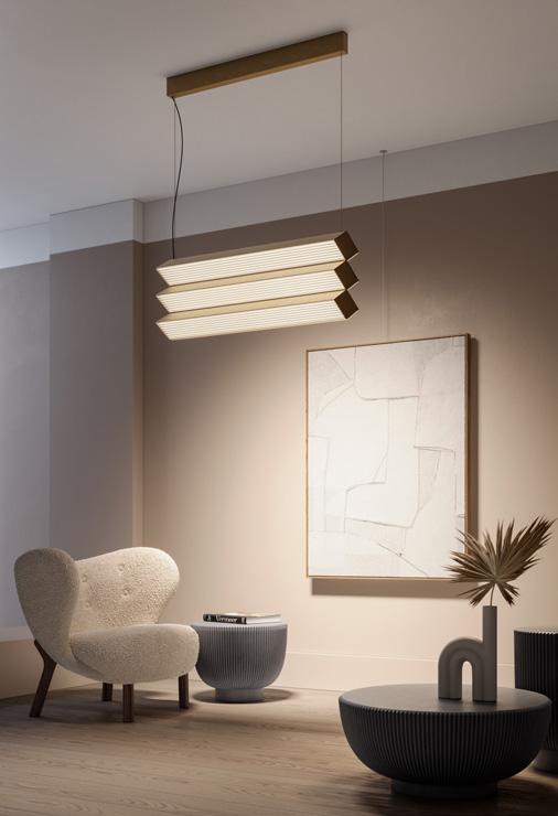 In Stick the light emanates, skillfully modulated, through a diffuser with a ribbed glass effect, contained within a metal extrusion in satin copper and gold nickel finishes.