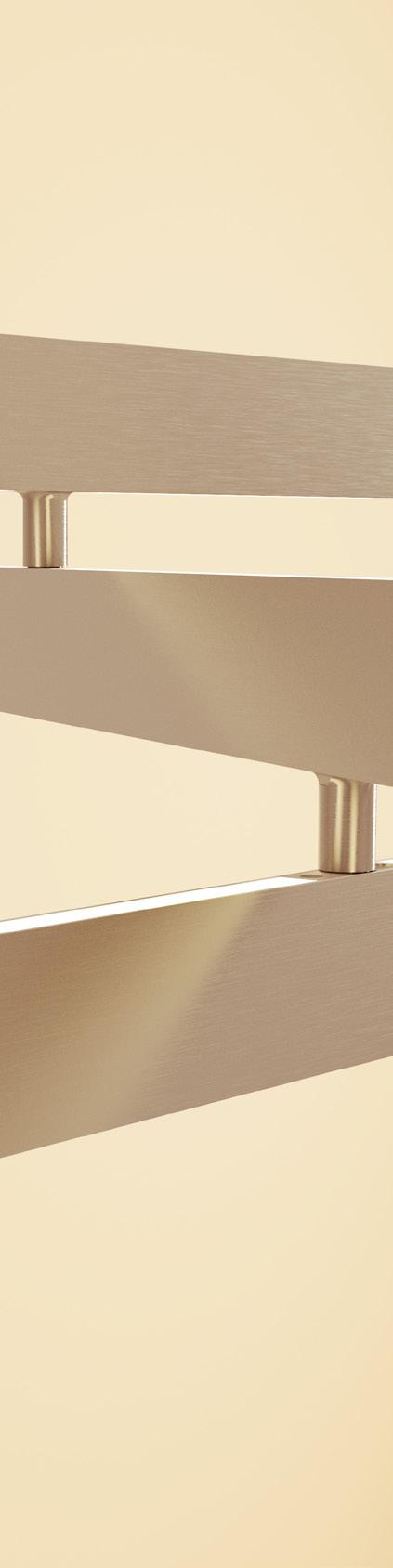 In Stick la luce si propaga, sapientemente modulata, attraverso un diffusore con effetto vetro cannettato, contenuto all’interno di un estruso metallico nelle finiture satinate rame e nickel dorato.