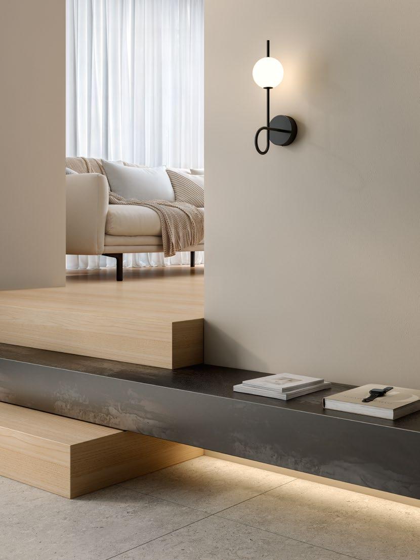 Lune casts a warm, indirect glow, embracing walls with its soft, feminine curvature. It integrates naturally into any space, while its engraved metal plate merges function and elegance. Light that guides, adorns, and informs. Lune proyecta una luz cálida e indirecta, abrazando la pared con su suave y femenina curvatura. Se integra de forma natural en cualquier espacio, mientras su pantalla metálica grabada fusiona función y elegancia. Luz que guía, adorna e informa.