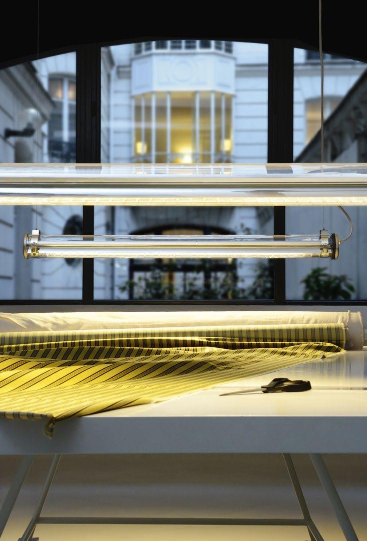 Les luminaires sont imaginés au siège parisien, développés dans son centre de recherche et innovation en Sologne, fabriqués comme à la première heure dans son usine à Châtillon-sur-Saône.