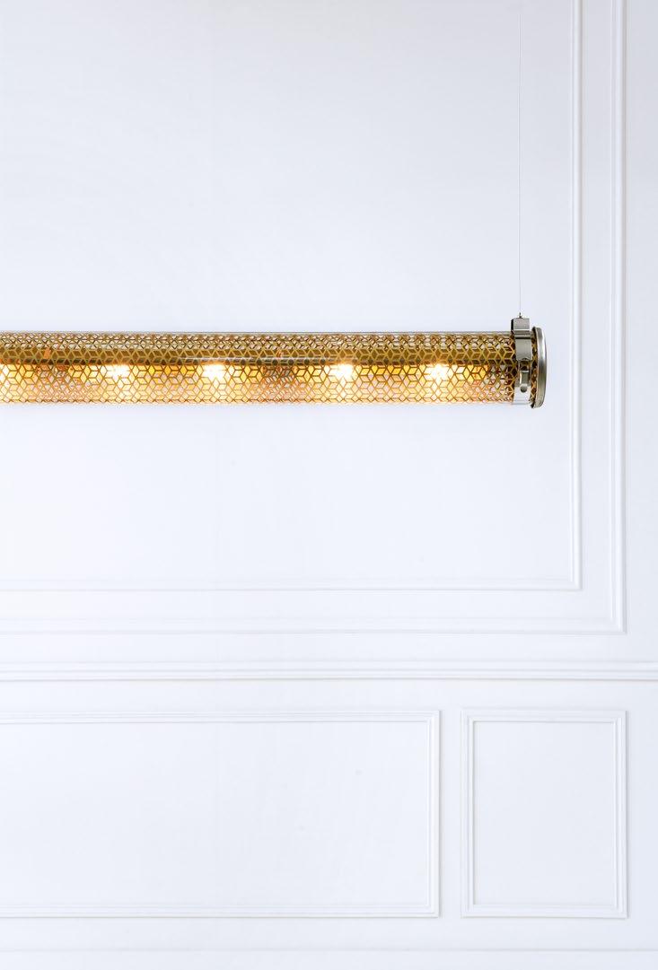 Normal Studio created for Sammode a series of grids that delicately wrap the tubular luminaires. The first luminaire of the Paname collection was the Rivoli luminaire, which was specially designed for the Musée des Arts Décoratifs in Paris and where it lights today the contemporary galleries. Rivoli, Vendôme, Monceau, Belleville, each model has its own history and filters the light in its own way, projecting the industrial tube into a more domestic universe.