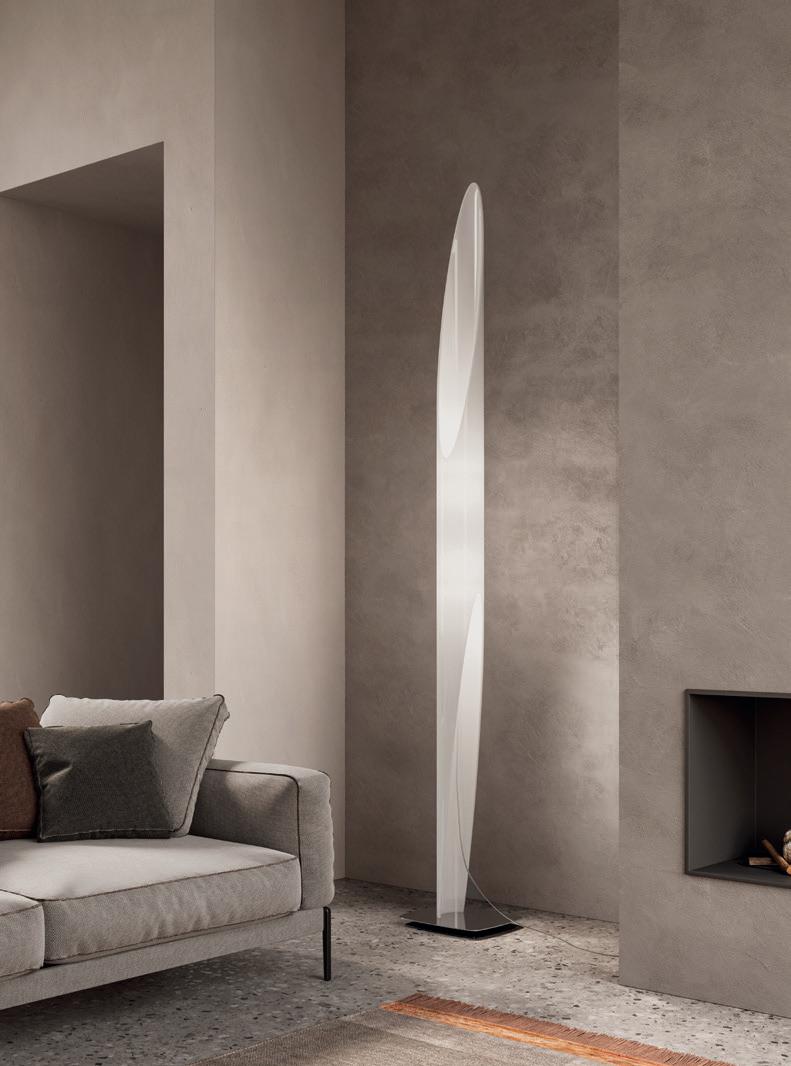 IT Tratto Floor reinterpreta la versione a sospensione capovolgendola e proiettandola verso l’alto con slancio scultoreo. Un cambio di prospettiva. La silhouette allungata si integra nell’ambiente con armonia, diventando un punto di riferimento visivo e sensoriale. Un segno verticale che illumina con personalità, dialoga con lo spazio e traccia nuove traiettorie di luce.