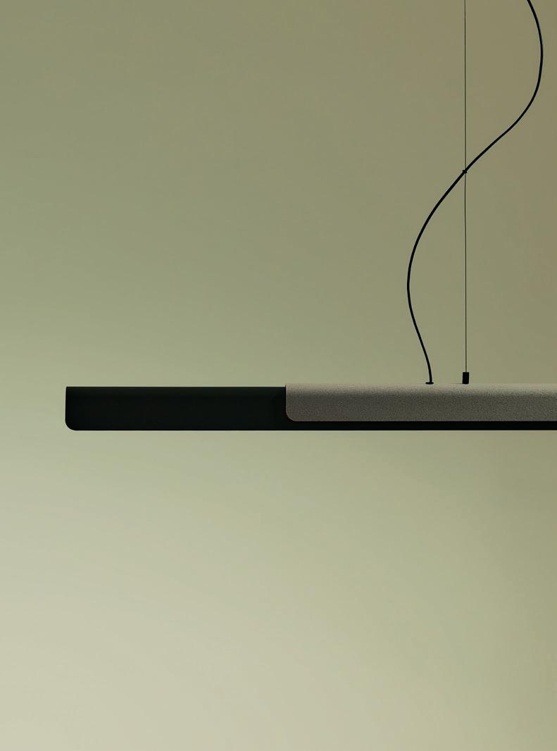 Tratto Floor reinterprets the suspension version by flipping it upside down and projecting it upwards with sculptural momentum. A change of perspective. The elongated silhouette harmoniously integrates into the environment, becoming a visual and sensory landmark. A vertical sign that illuminates with personality, interacts with space, and traces new paths of light.